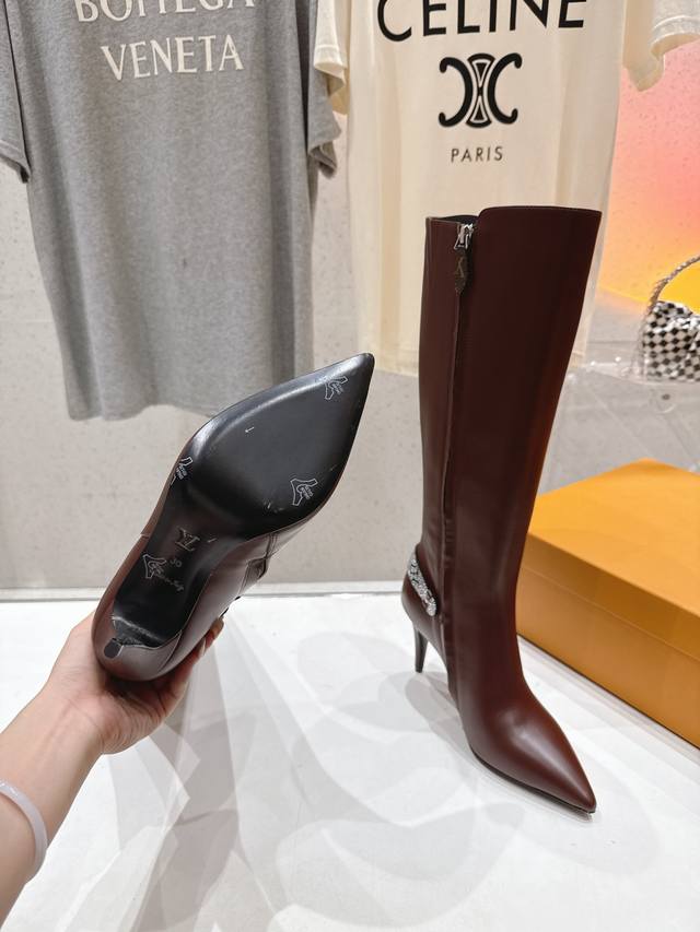 High-quality factory version DDD Louis Vuitton 25Ss Lv brand autumn/winter new high-heeled boots DDD Versatile last for slim feet Yyds. Three-dimensional and full shape, full of temperament, comfortable to wear, very retro style, full of aura, plus original monogram design style is very classic and perfect details DDD Upper: Original imported top layer calfskin DDD Lining: Imported cowhide DDD Outsole: Italian imported genuine leather DDD Heel height: 7.5Cm DDD Size: 35-40 40.41 Made to order, no returns or exchanges DDD