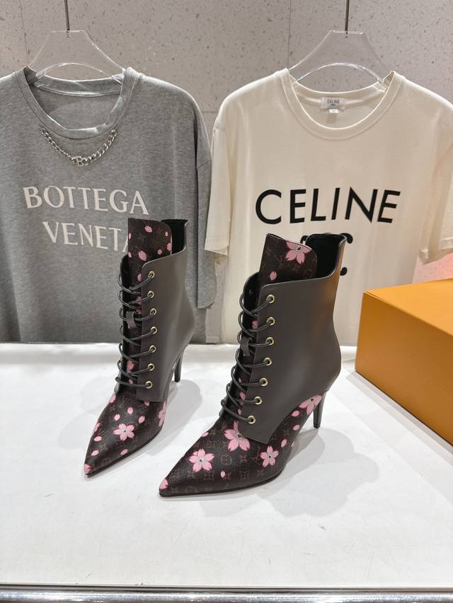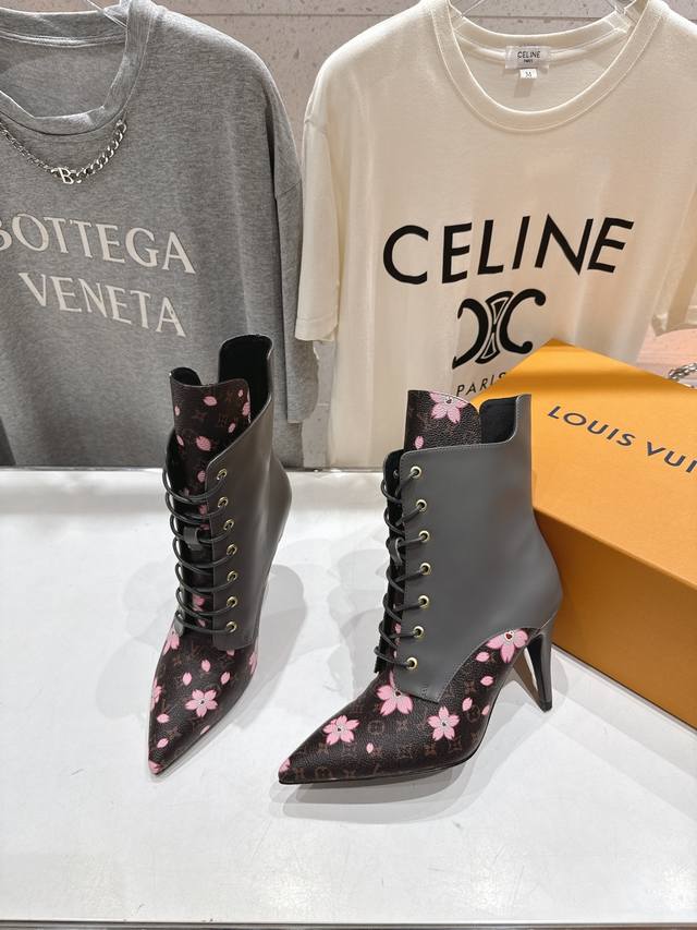 High-quality factory-made Louis Vuitton 25Ss Lv brand autumn/winter new high-heeled ankle boots. Versatile last for slim feet. Three-dimensional and full shape, exuding elegance. Comfortable to wear, very retro and stylish. Original monogram design, classic style, perfect details. Upper: Original imported top-grain cowhide. Lining: Imported cowhide. Outsole: Italian imported genuine leather. Heel height: 7.5cm. Size: 35-40. 40.41 Made to order, no returns or exchanges.