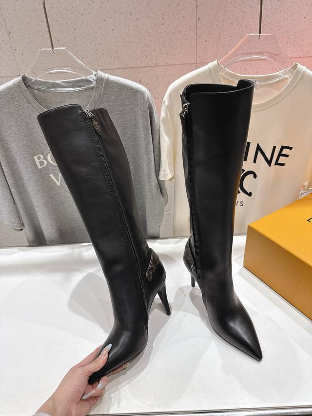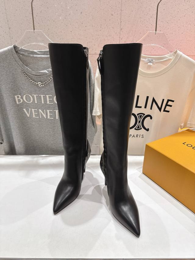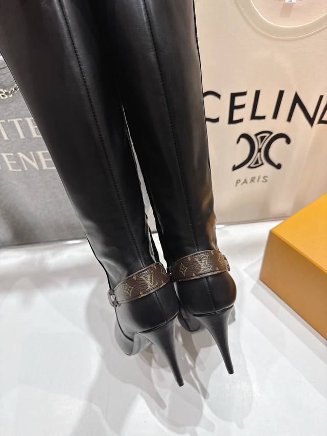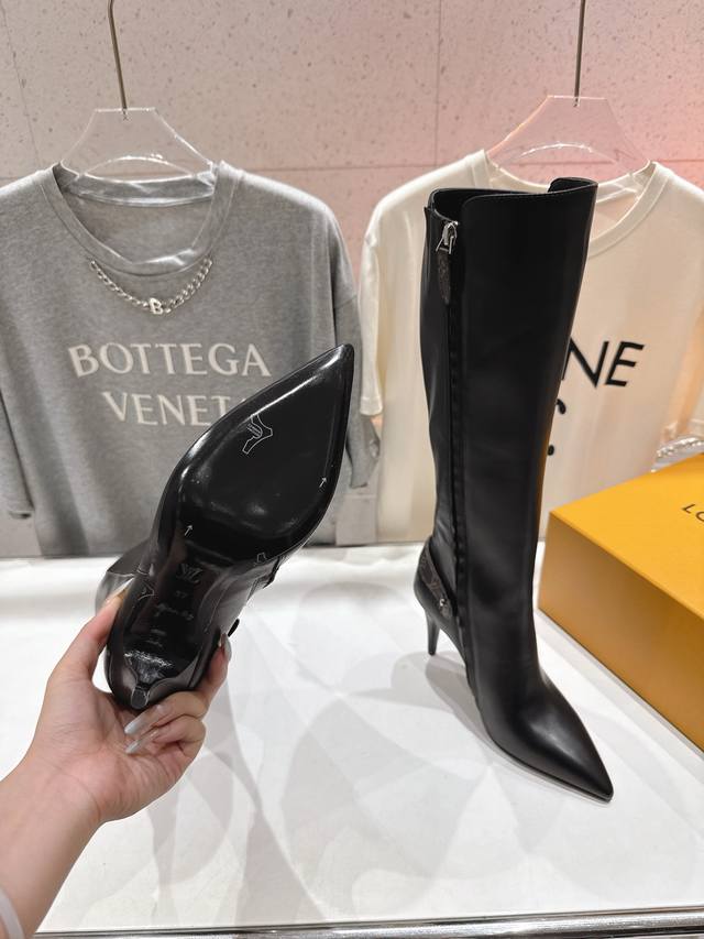 High-quality factory-made Louis Vuitton 25Ss Lv brand autumn/winter new high-heeled boots. Versatile last for slim feet. Three-dimensional and full shape, exuding elegance. Comfortable to wear, very retro style, full of presence. Original monogram design, classic style, perfect details. Upper: Original imported top-grain calfskin. Lining: Imported cowhide. Outsole: Italian imported genuine leather. Heel height: 9.0cm. Size: 35-40. 40.41 Made to order, no returns or exchanges.