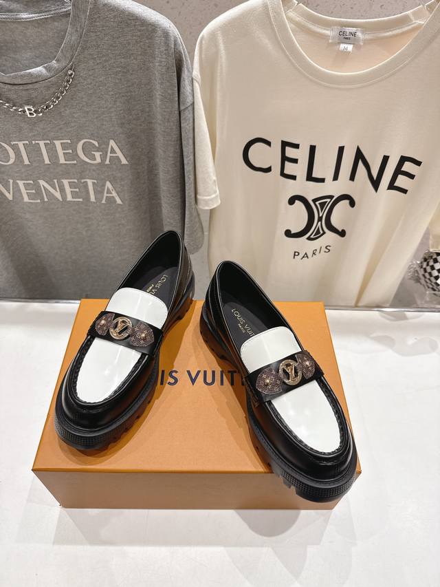 High-quality factory-made Louis Vuitton Ss25 F057 LV new platform casual loafers. These loafers feature a lightweight and comfortable upper crafted from top-grain calfskin. The thick EVA outsole is adorned with a striking embossed pattern, offering a stylish yet edgy look perfect for everyday wear. Upper: Imported top-grain cowhide; Lining: Cowhide; Outsole: Original molded anti-slip outsole; Sizes: 35-41 (Women's 40.41, custom orders, no returns or exchanges).