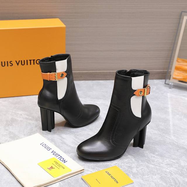 High-quality import! Complete packaging. This Loui & Vuitto Silhouette long boot features a soft material, LV's new element of straps and buckles with painted edges, complex craftsmanship, a plum blossom heel design, exuding a noble temperament, original molded last, and a side zipper for easy on and off. Materials: Imported top-grade calfskin; Lining: Imported sheepskin; Insole: Sheepskin; Outsole: Italian genuine leather; Heel height: 8.5cm (plum blossom heel); Sizes: 34-41 (34, 40, 41 are custom-made and non-refundable); Price: 510 (Long boots)