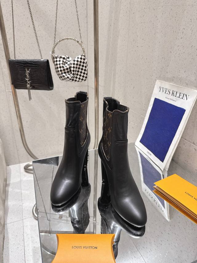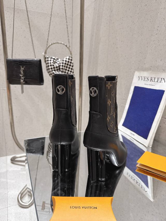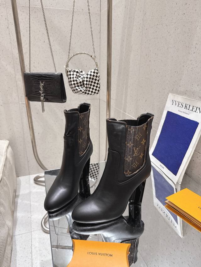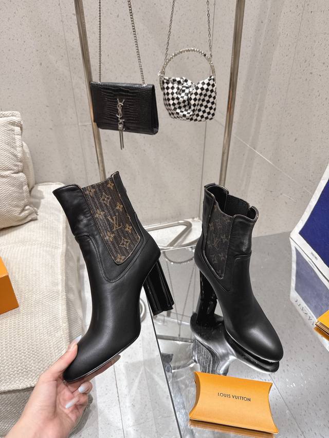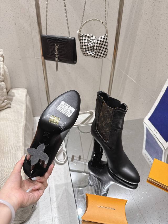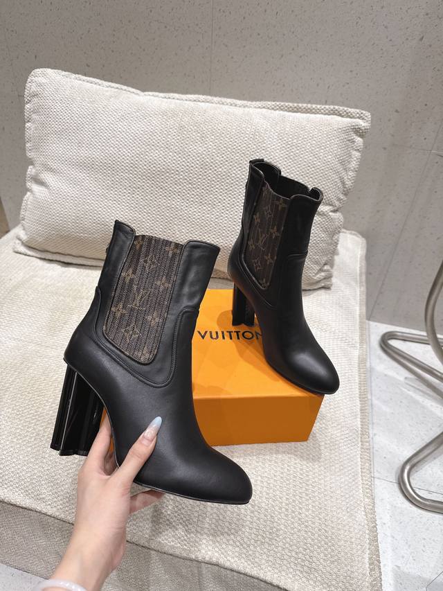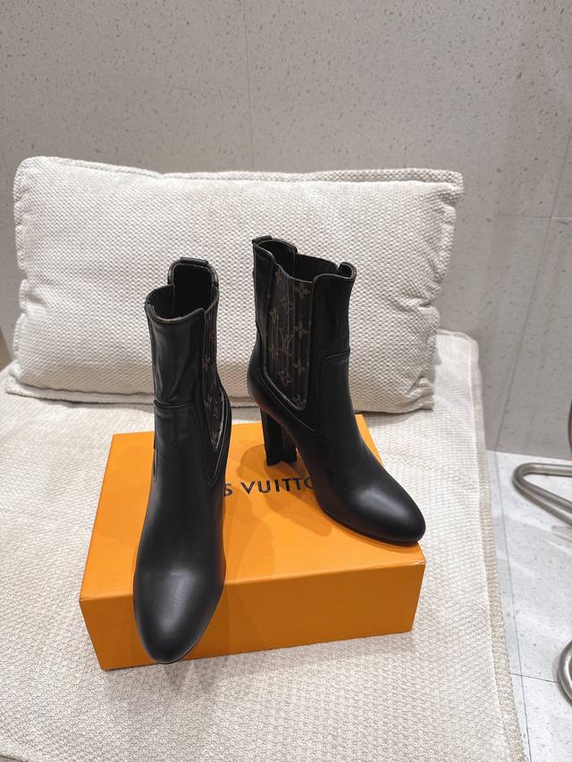 High-quality import! Fully packaged. This Louis Vuitto ankle boot features a plum blossom heel and is crafted from supple calfskin. The side stripes with the LV logo add a touch of elegance, while the top-grade calfskin leather upholstery showcases the classic Louis Vuitton design. Materials: Imported top-grade calfskin; Lining: Imported sheepskin; Insole: Sheepskin; Outsole: Italian genuine leather; Heel height: 9.5cm plum blossom heel; Sizes: 34-41 (34, 40, 41 are custom-made and non-refundable).