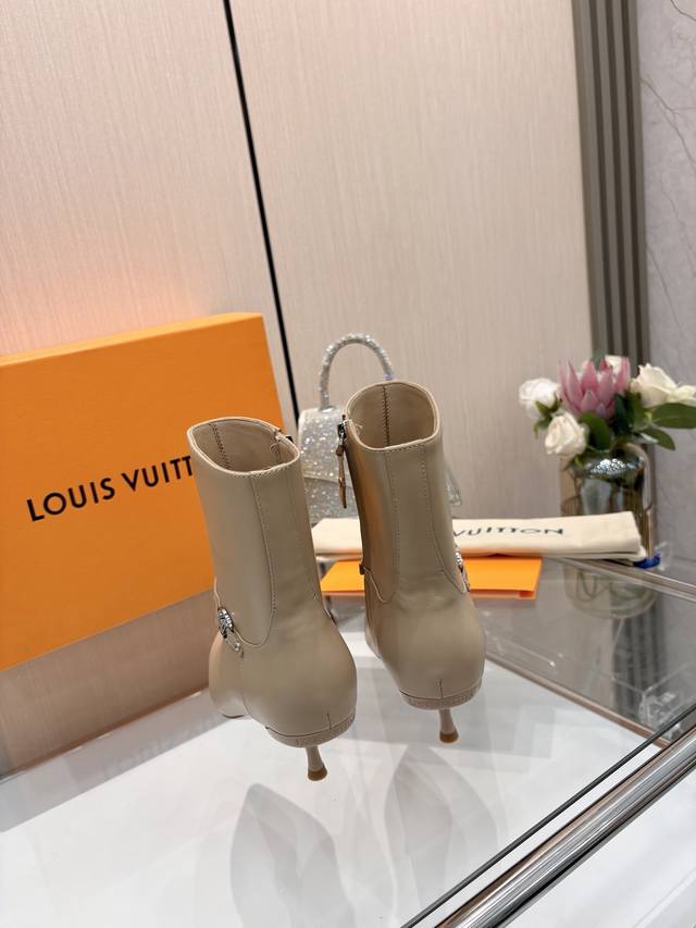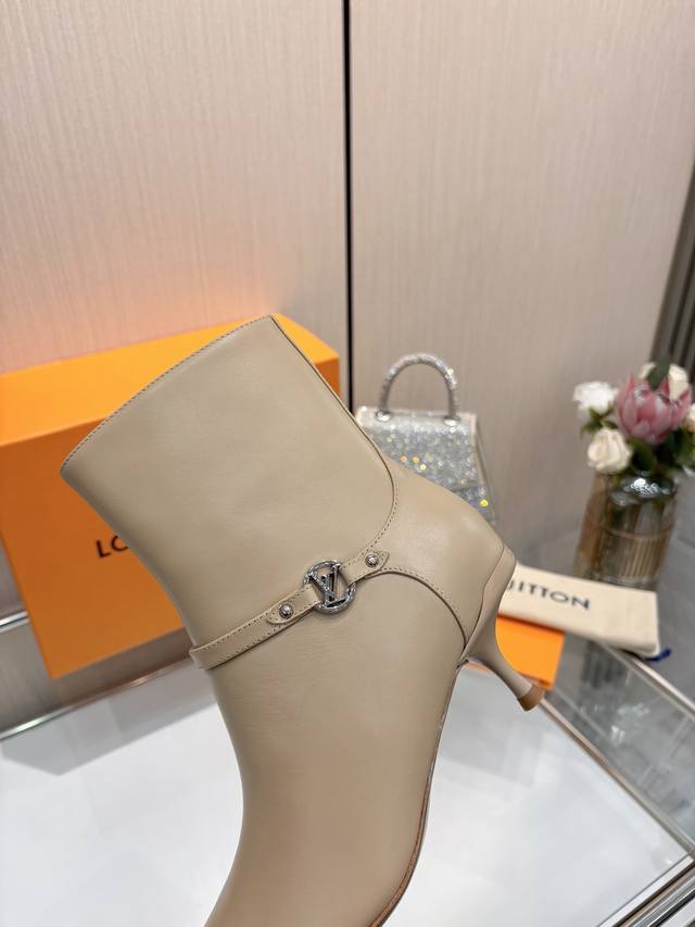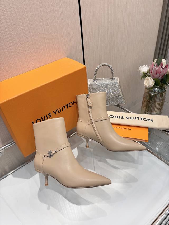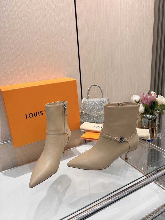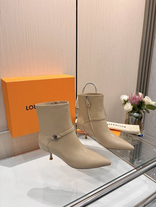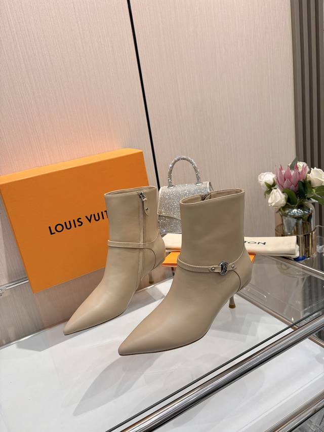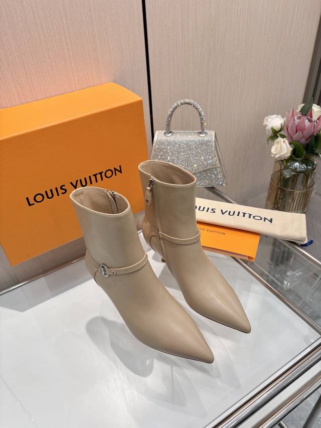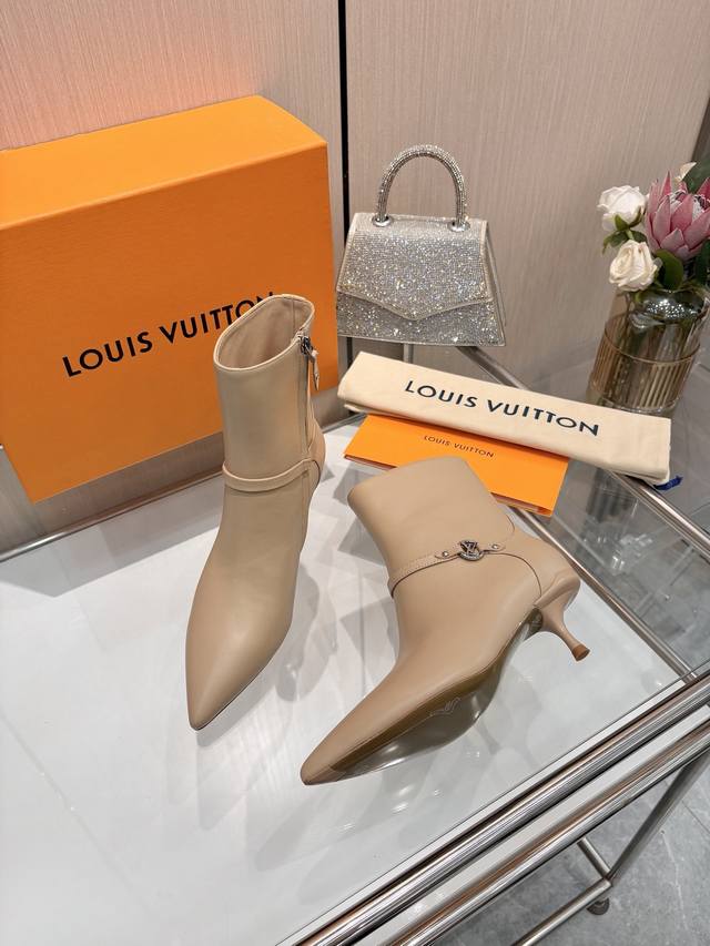 High-quality Louis Vuitton 2025 Autumn/Winter ankle boots! Perfect last, factory direct wholesale: New pointed toe style, updated simultaneously with the official website. The Lv hardware "Logo" adds a touch of sophistication, creating a visually stunning effect that perfectly embodies Lv's elegant style. Comfortable to wear and incredibly feminine. New original molded last, perfectly 1:1 shape, exquisite workmanship, imported high-end fabrics for a refined texture! Fabric: Calfskin monogram denim; Lining: High-quality soft sheepskin; Insole: Imported goatskin; Outsole: Italian genuine leather; 5.5 painted heel. Sizes: 34-41 (34.40, 41). Custom orders are non-refundable and non-exchangeable.
