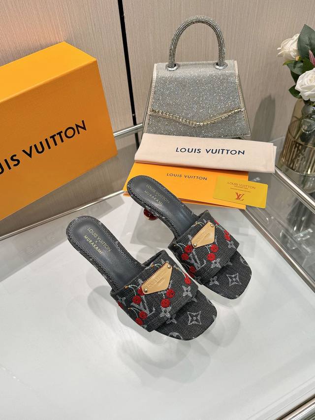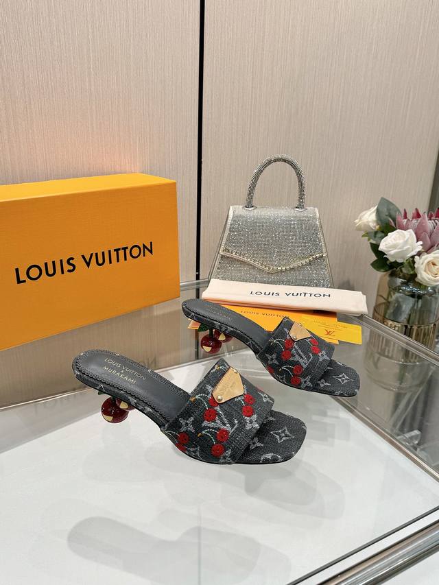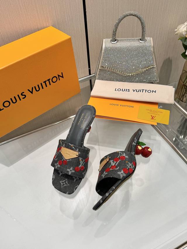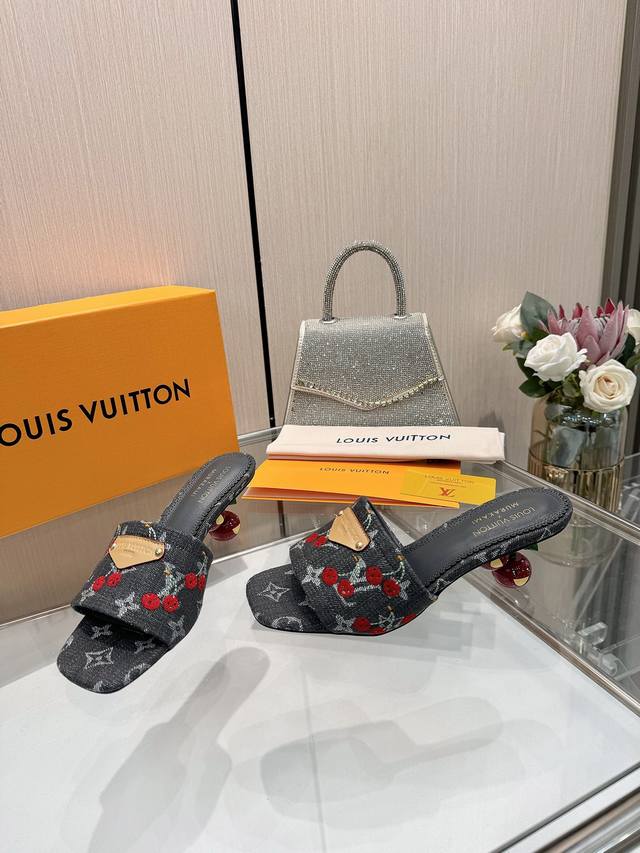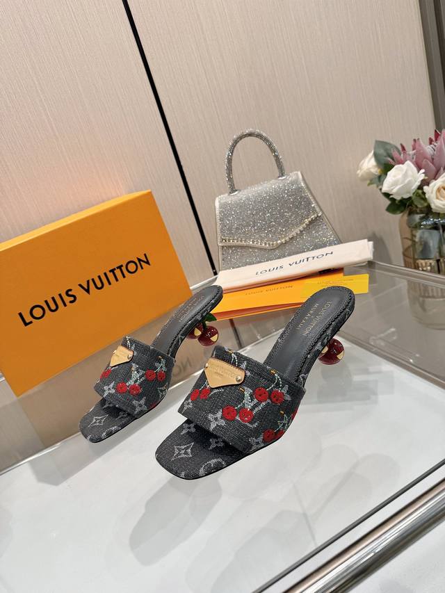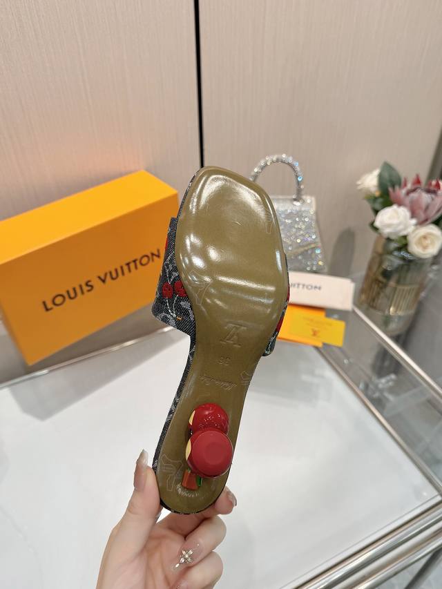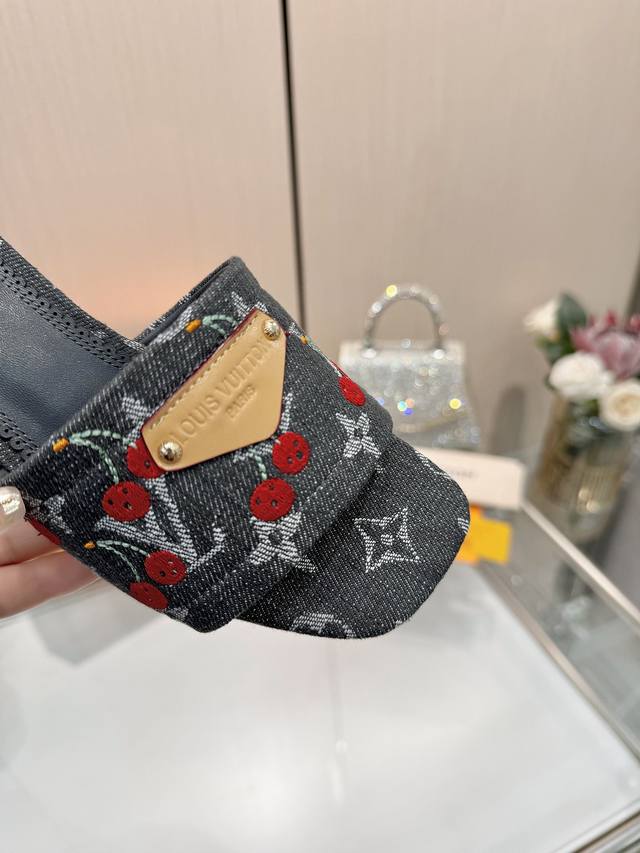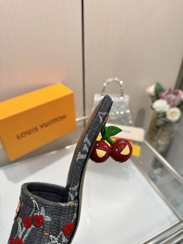 High-quality Louis Vuitton 2025 official collection, sourced directly from the factory! Factory direct: Perfect last, new cherry embroidery decoration for added elegance, comfortable and stylish, very feminine, fashionable and versatile, new original molded last, perfect 1:1 shape, exquisite workmanship, imported high-end fabric for a refined texture! Material: LV denim floral leather, high-quality soft sheepskin lining, insole: imported goatskin, Italian genuine leather outsole, 5.5 painted cherry heel. Sizes: 34-41. Sizes 34 and 41 are custom-made, no returns or exchanges.
