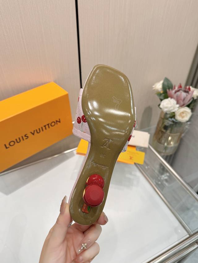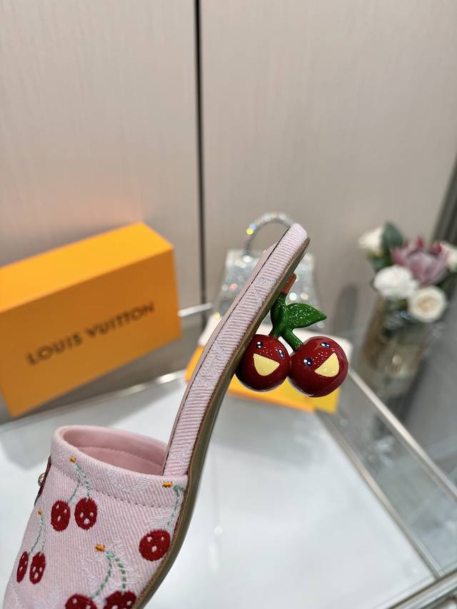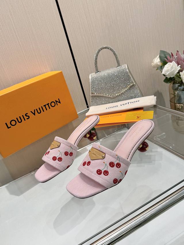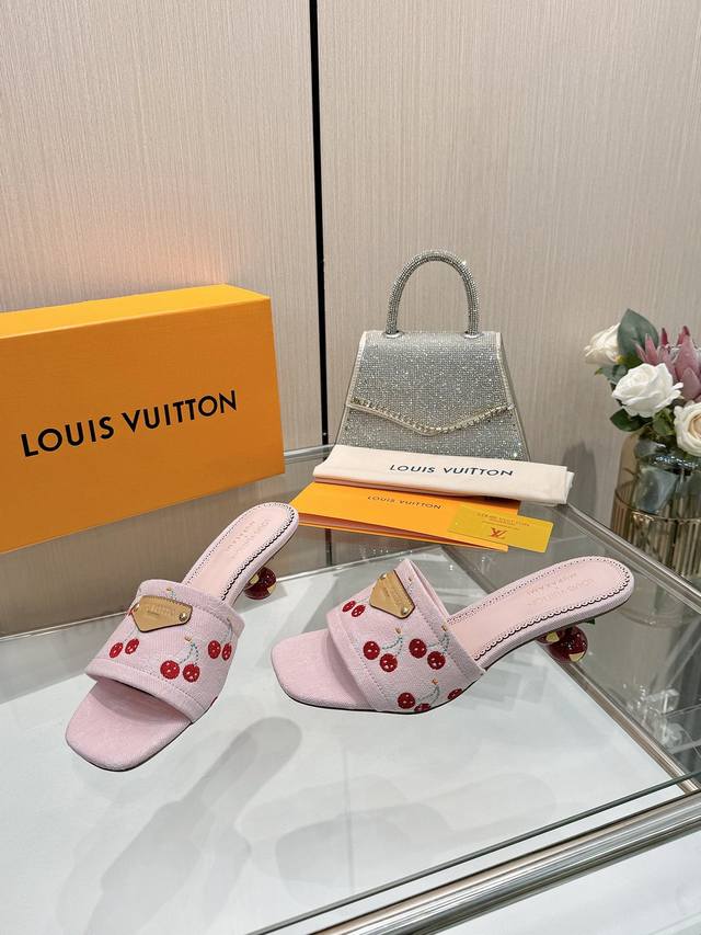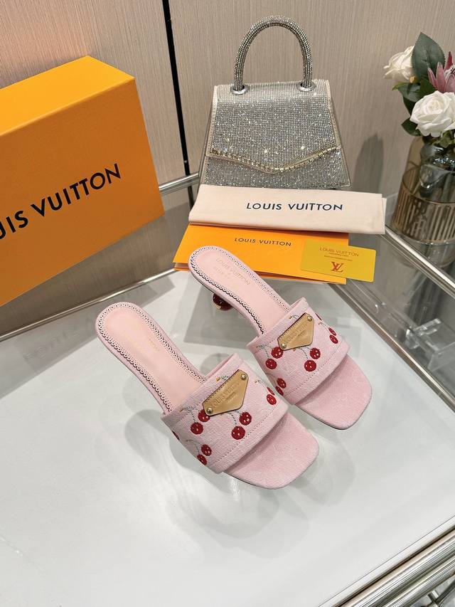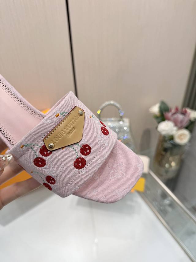 High-quality Louis Vuitton 2025 official website collection, sourced directly from the factory! Factory direct: Perfect last, new cherry embroidery decoration for added elegance, comfortable and stylish, very feminine, fashionable and versatile, new original molded last, perfect 1:1 shape, exquisite workmanship, imported high-end fabric for a refined texture! Material: LV denim floral leather, high-quality soft sheepskin lining, insole: imported goatskin, Italian genuine leather outsole, 5.5 painted cherry heel. Sizes: 34-41. Sizes 34 and 41 are custom-made, no returns or exchanges.