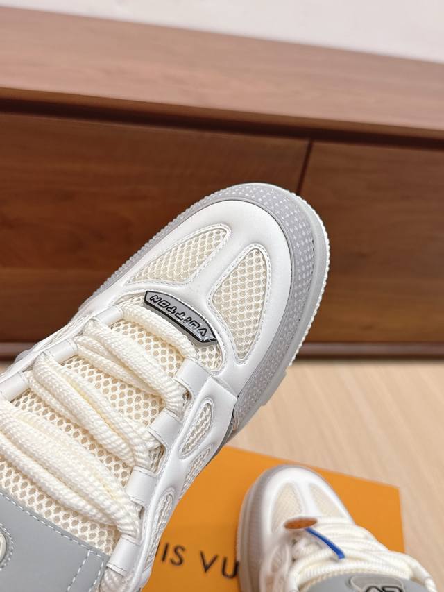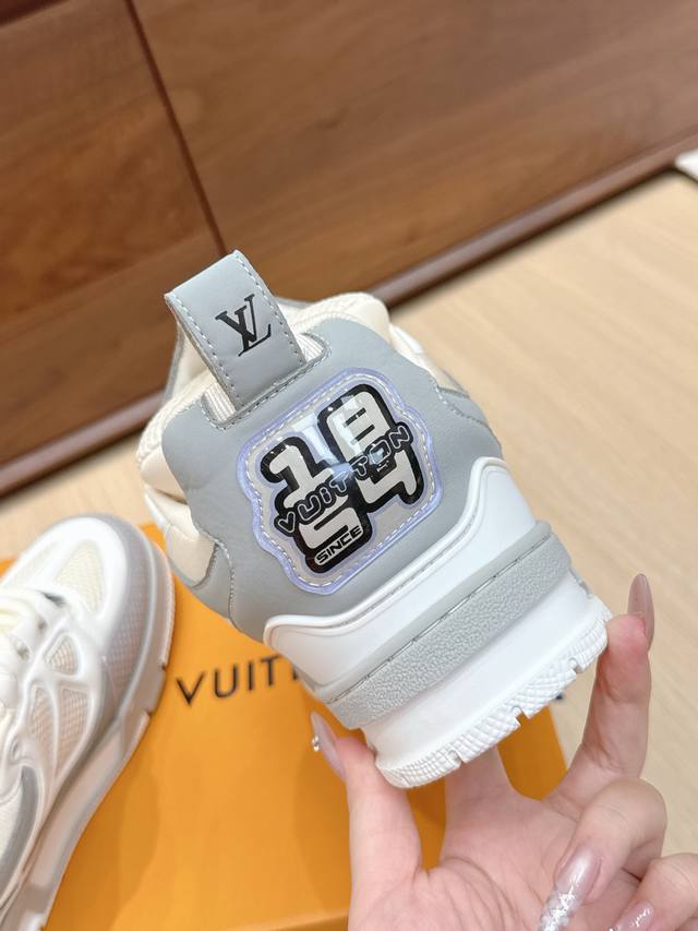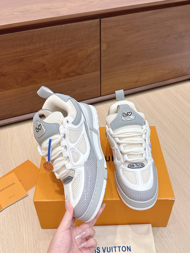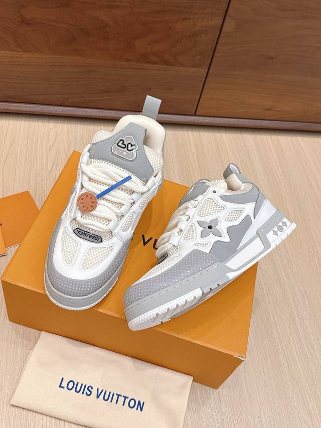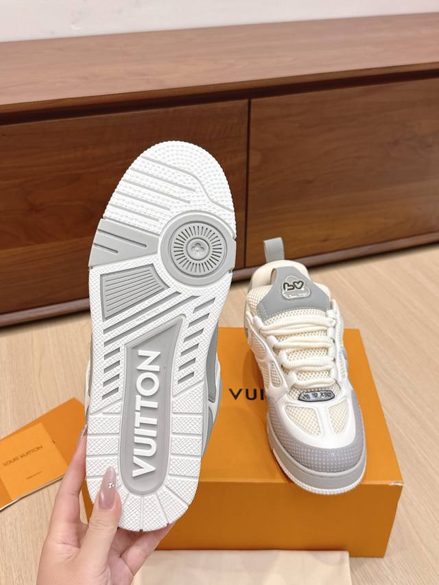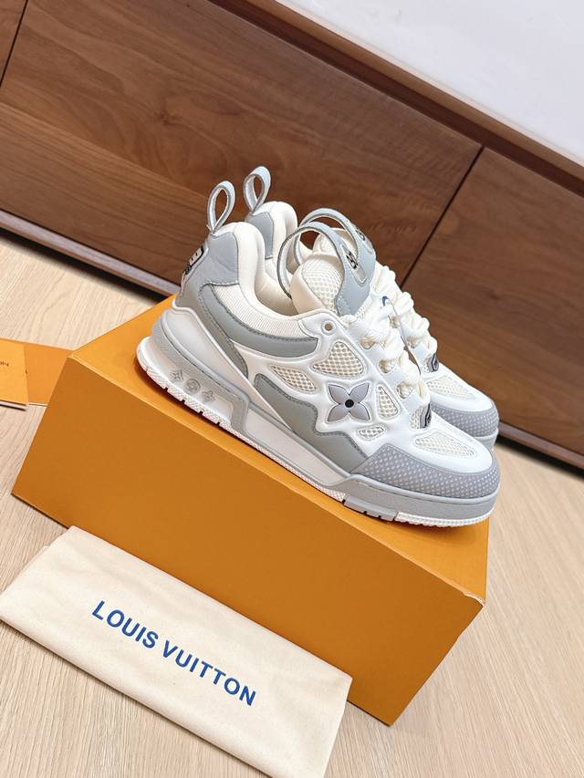 High-quality Louis Vuitton LV Skate sneakers, featuring a combination of Monogram denim and technical mesh fabric, along with technical laces and a rubber outsole, exuding the striking style of the 1990s. The padded collar and tongue continue the iconic elements, with the "Iv Since 54" logo representing Louis Vuitton's founding year of 1854. The Monogram floral-embellished rubber outsole is crafted from top-grain leather and high-tech fabric, with a contrasting rubber toe cap and mesh lining with cotton insole, ensuring unparalleled comfort. A timeless classic, superior quality, a worthy addition to any collection! Sizes: 35-45
