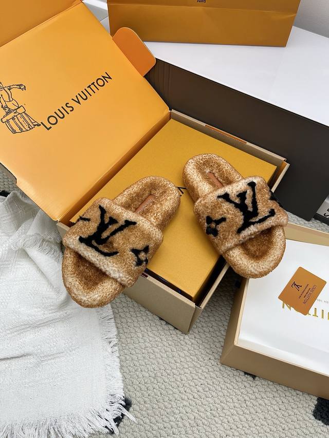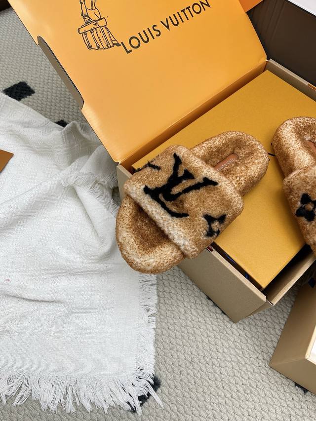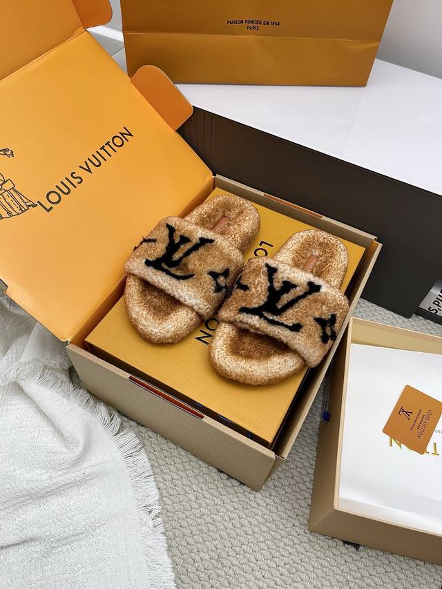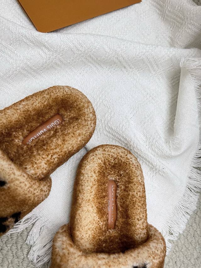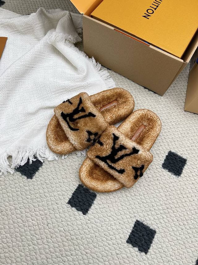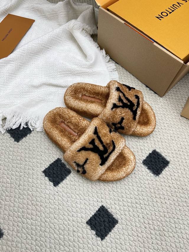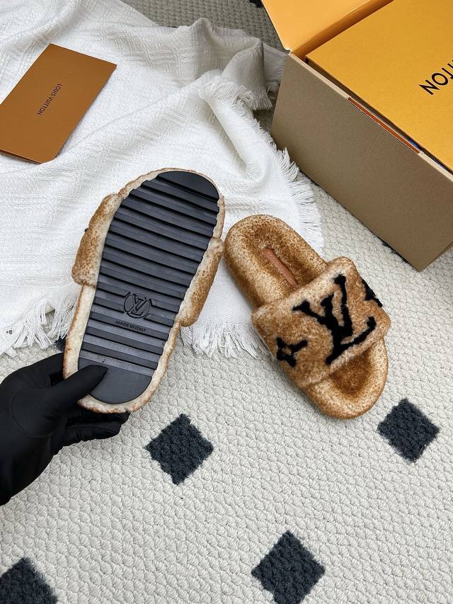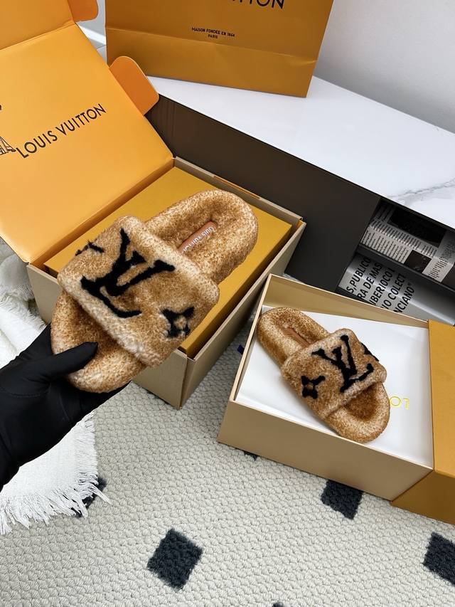 High-quality Louis Vuitton new wool slippers (retailer grade). Made with top-quality pure wool from a single piece! Super warm, wearing them feels like walking on clouds. Classic LV monogram embellishments, exquisite and sophisticated! Hand-stitched rhinestones add a touch of luxury and high-end style, significantly increasing the value of these slippers! The sole is an original molded EVA foam non-slip outsole, very comfortable and non-slip, and the sole has a certain thickness for excellent comfort! Upper: Original Australian wool; Lining: Australian wool; Insole: Australian wool; Outsole: Rubber; Sizes: 35-39, 40, 41. Custom orders are non-refundable and non-exchangeable.