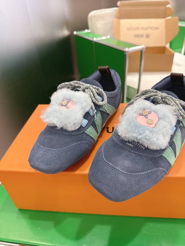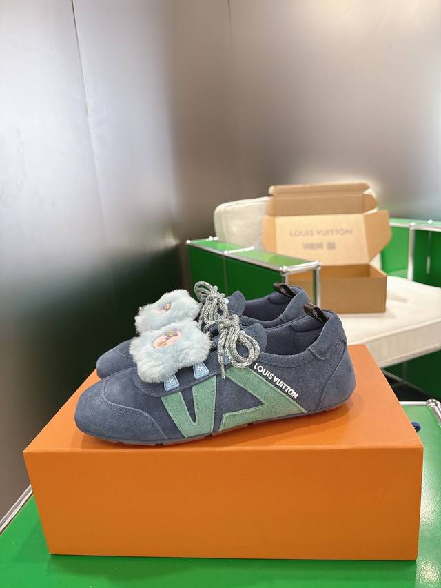 K053 DDD Louis Vuitton Sneakerina Series Ballet Flats, Training Shoes, Flats, Casual Shoes DDD This Lv Sneakerina ballet flat features a mixed-material upper and a flexible injection-molded outsole, cleverly blending the comfort of an athletic shoe with the lightweight silhouette of a ballet flat. The Lv lettering and Louis Vuitton logo are prominently displayed on one side, while the Monogram canvas heel strap adds a touch of sophistication. DDD Sizes: 35-41 DDD
