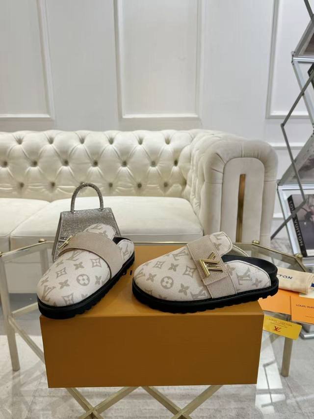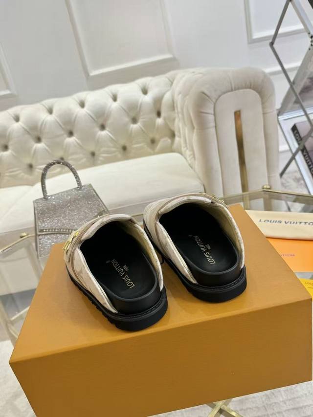 L Louis Vuitton 2025 Autumn/Winter New Fleece Slippers Series. Original details, super authentic fit, super good-looking, looks great on, exudes style, fashionable and sporty, exceptionally comfortable. Material: Original custom monogram fabric. Lining: Original custom sheepskin and wool lining. Insole: Original imported sheepskin and wool insole. Outsole: Original molded non-slip rubber sole. Height: 2.5cm. Sizes: 35-41 (Women's), 39-45 (Men's). Factory price (Women's & Men's).