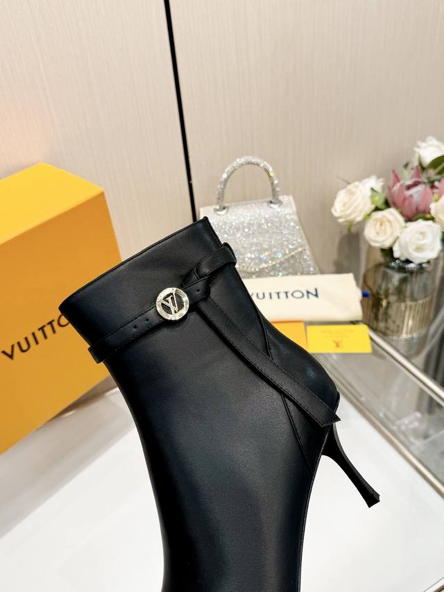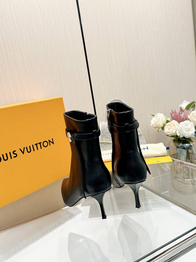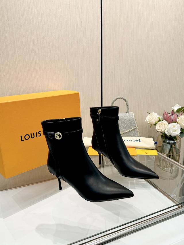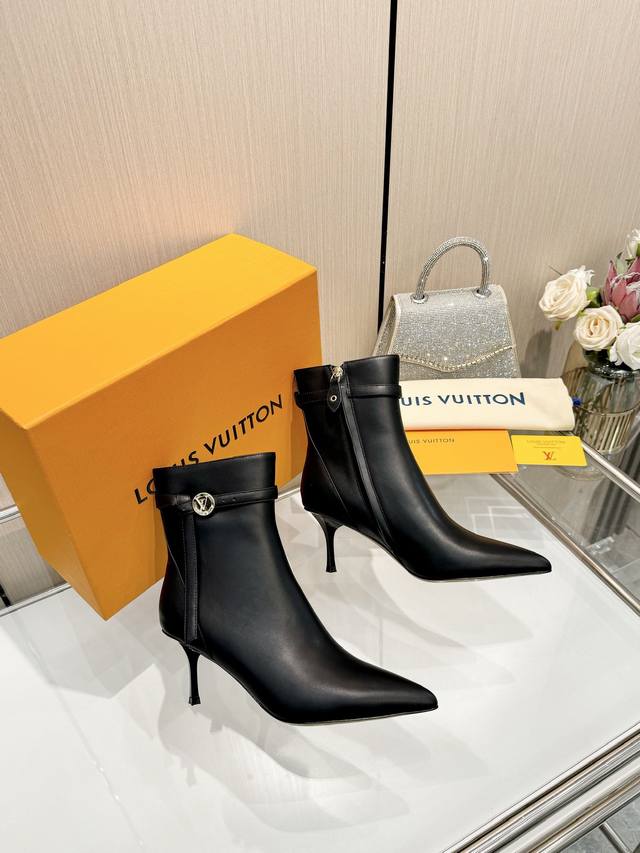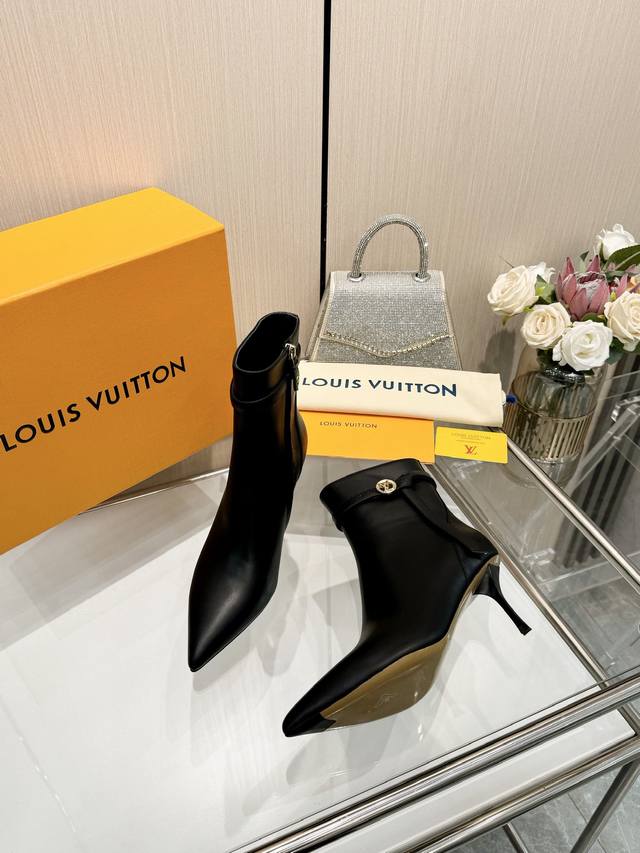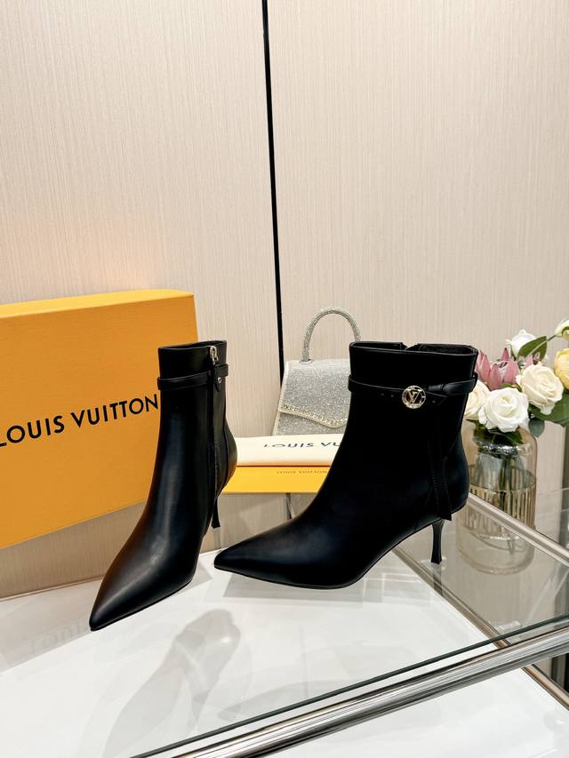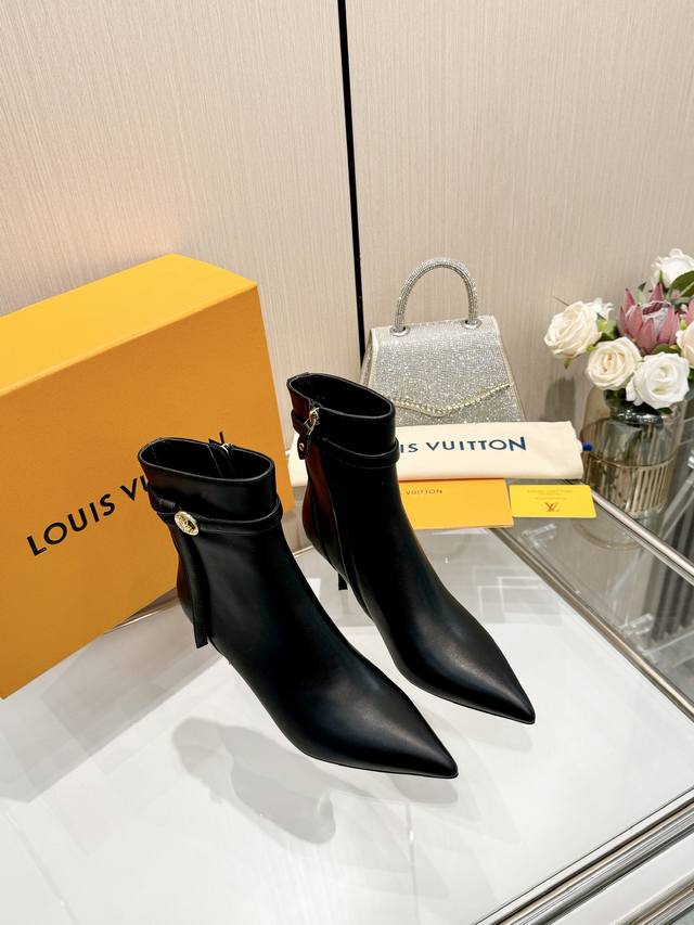 Latest Louis Vuitton Fall/Winter runway ankle boots, updated simultaneously with the official website series, factory direct wholesale: Perfect last + Louis Vuitton's new element button design, full of femininity, noble temperament, original mold last, perfect 1:1 shape, high-end quality, imported high-end fabric presents exquisite texture! Material: calfskin, imported patent leather, monogrammed leather, denim, horsehair. Lining: High-quality soft sheepskin lining. Insole: Imported goatskin. Custom-made A-grade high-density private mold sole, luxurious packaging! 7cm painted heel. Sizes: 35-40, 34, 40, 41 (custom orders, no returns or exchanges).