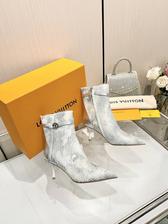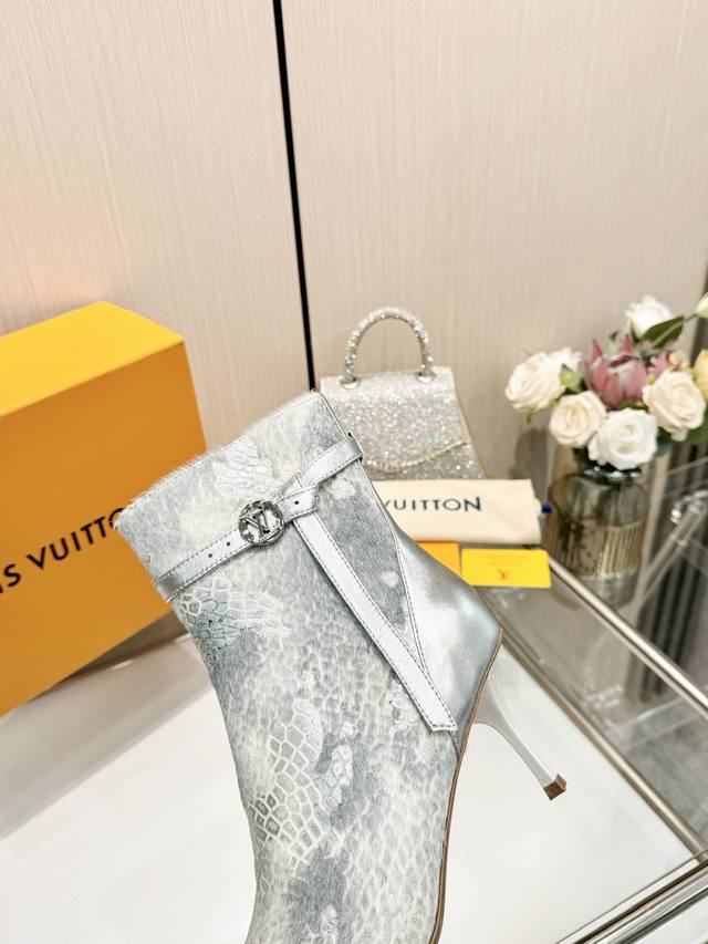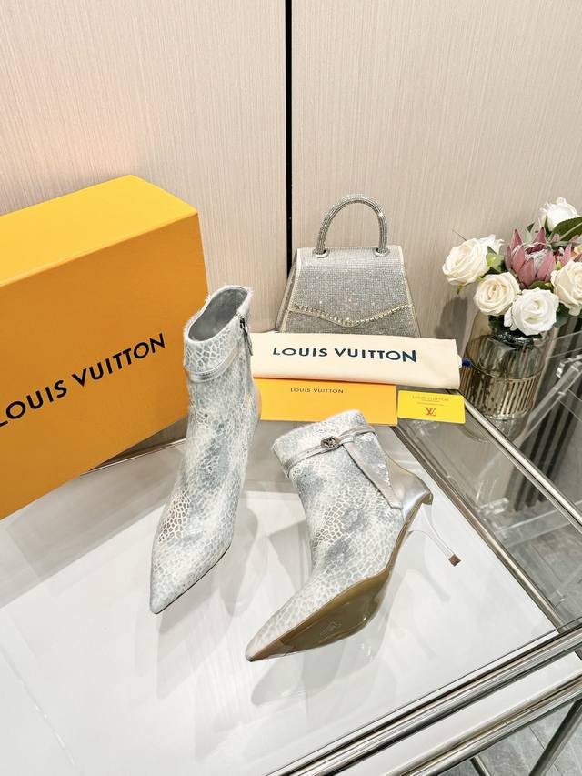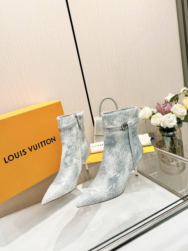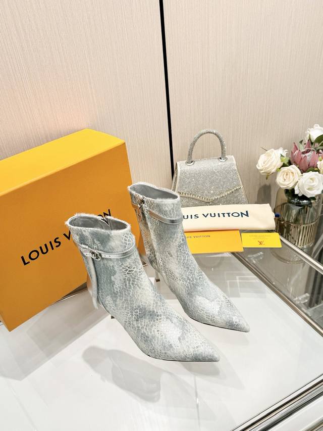 Latest Louis Vuitton Fall/Winter runway ankle boots, updated simultaneously with the official website series, factory direct wholesale: Perfect last + Louis Vuitton's new element button design, full of femininity, noble temperament, original mold last, perfect 1:1 shape, high-end quality, imported high-end fabric presents exquisite texture! Material: calfskin, imported patent leather, monogrammed leather, denim, horsehair. Lining: High-quality soft sheepskin lining. Insole: Imported goatskin. Custom-made A-grade high-density private mold sole, luxurious packaging! 7cm painted heel. Sizes: 35-40, 34, 40, 41 (custom orders, no returns or exchanges).