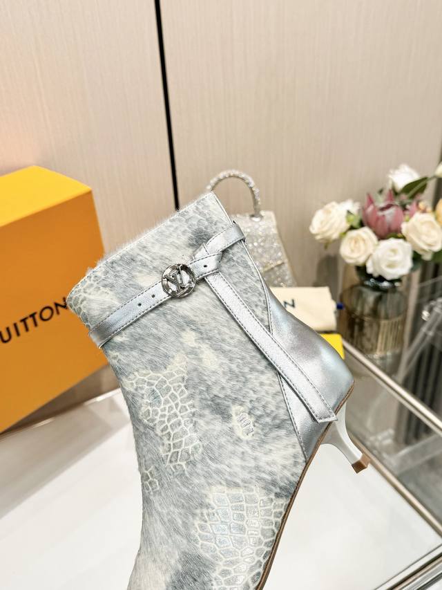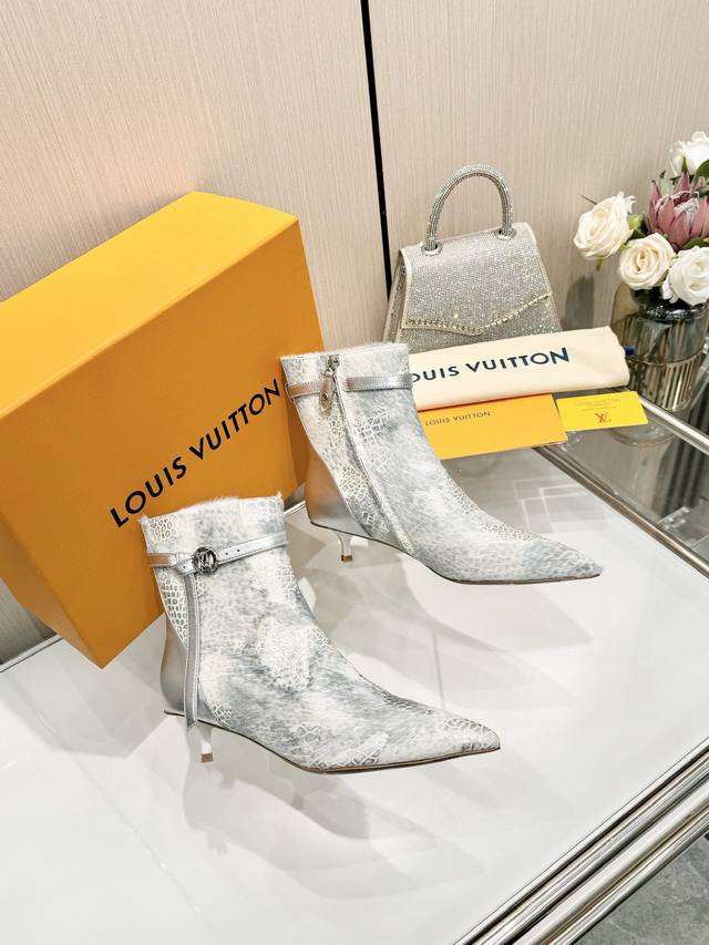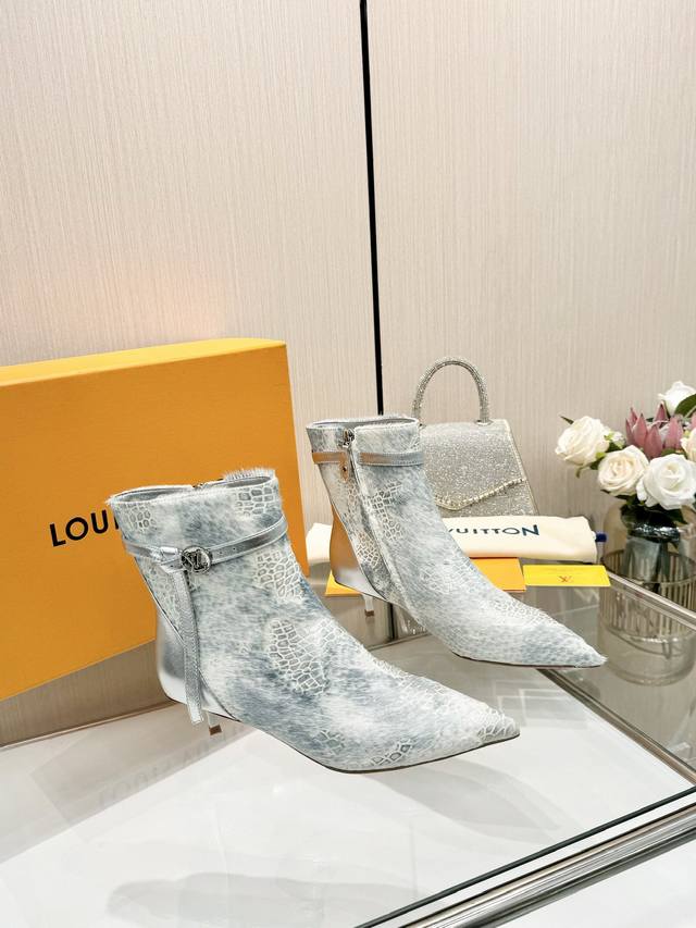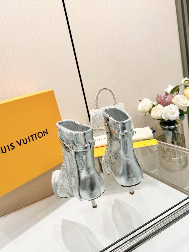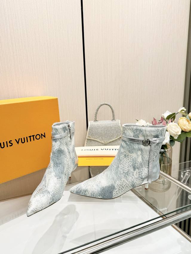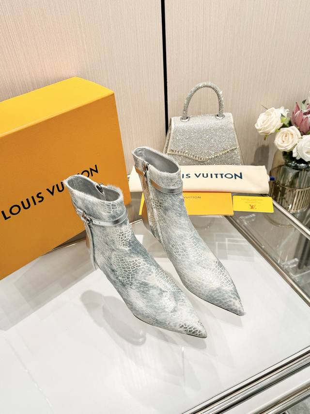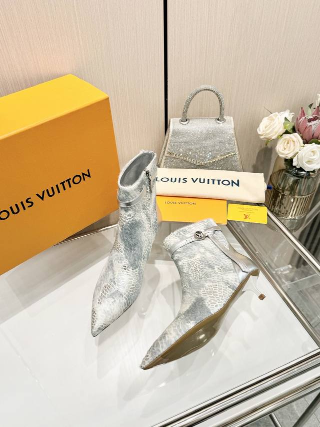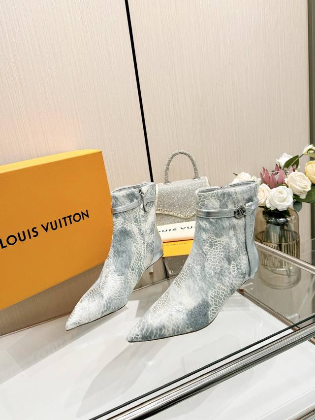 Latest Louis Vuitton Fall/Winter runway ankle boots, updated simultaneously with the official website series, factory direct wholesale: Perfect last + Louis Vuitton's new element button design, full of femininity, noble temperament, original mold last, perfect 1:1 shape, high-end quality, imported high-end fabric presents exquisite texture! Material: calfskin, imported patent leather, monogrammed leather, denim, horsehair. Lining: High-quality soft sheepskin lining. Insole: Imported goatskin. Custom-made A-grade high-density private mold sole, luxurious packaging! 4cm painted heel. Sizes: 35-40, 34, 40, 41 (custom orders, no returns or exchanges).