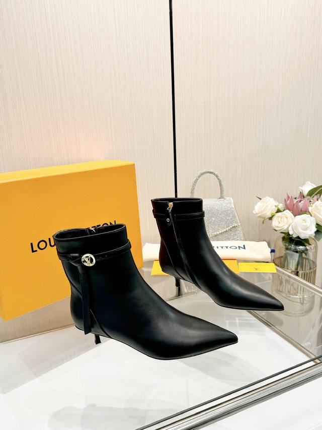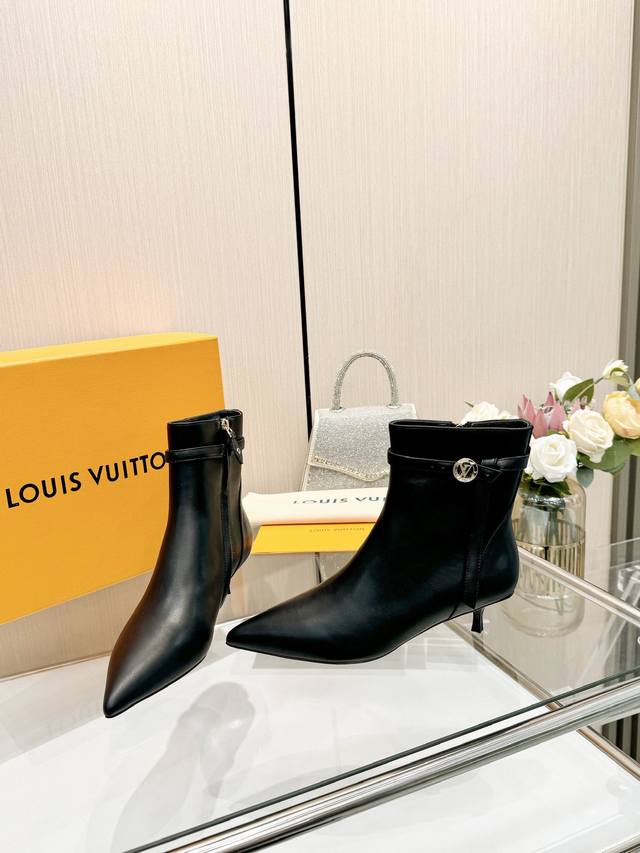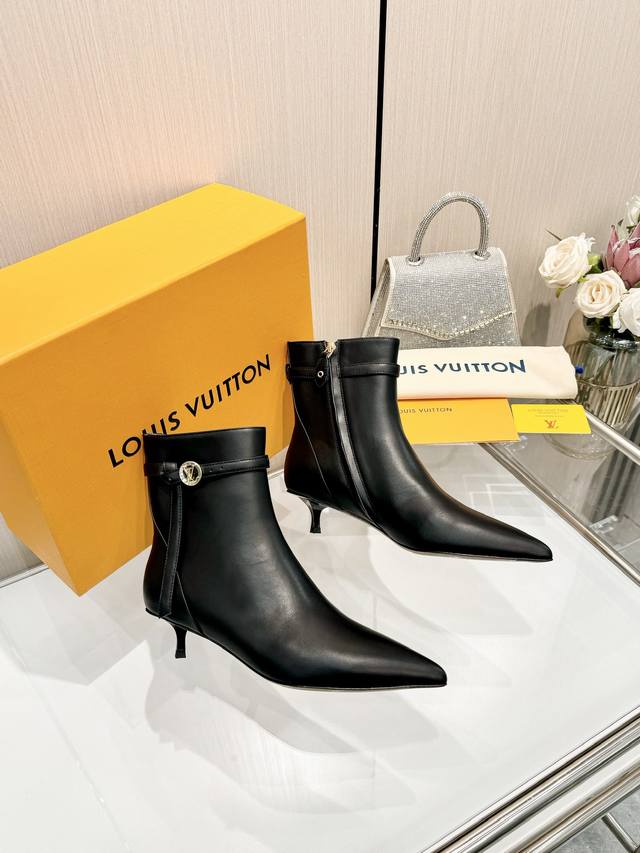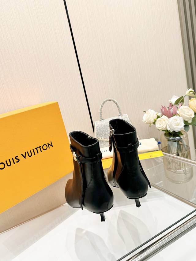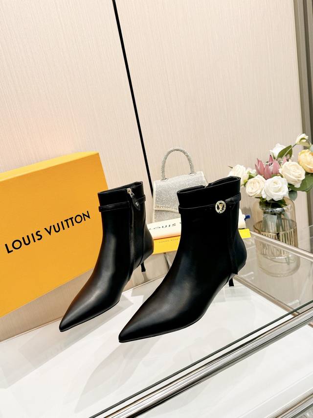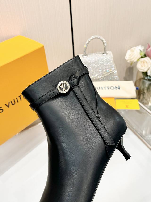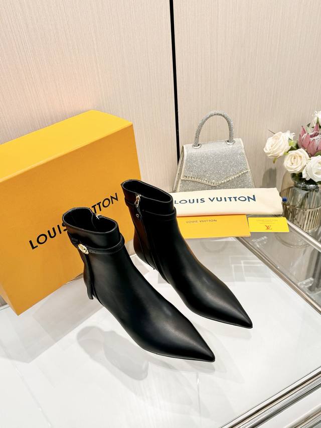 Latest Louis Vuitton Fall/Winter runway ankle boots, updated simultaneously with the official website series, factory direct wholesale: Perfect last + Louis Vuitton's new element button design, full of femininity, noble temperament, original mold last, perfect 1:1 shape, high-end quality, imported high-end fabric presents exquisite texture! Material: calfskin, imported patent leather, monogrammed leather, denim, horsehair. Lining: High-quality soft sheepskin lining. Insole: Imported goatskin. Custom-made A-grade high-density private mold sole, luxurious packaging! 4cm painted heel. Sizes: 35-40, 34, 40, 41 (custom orders, no returns or exchanges).