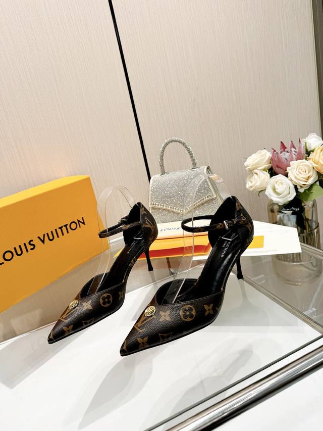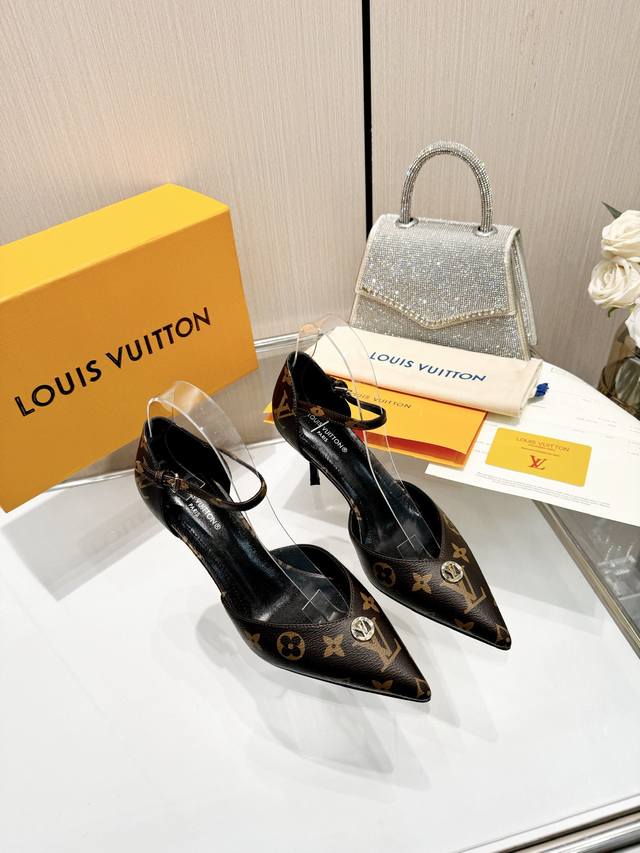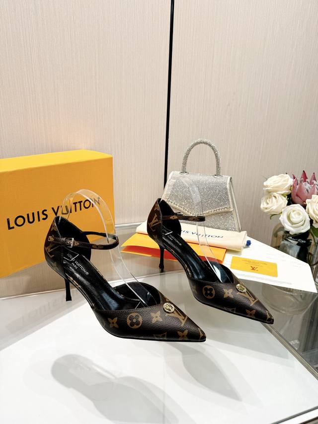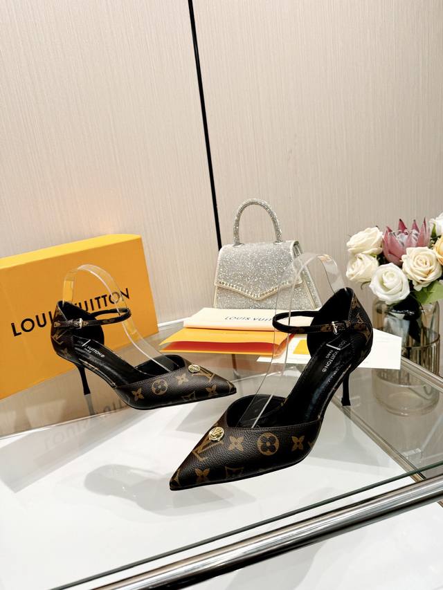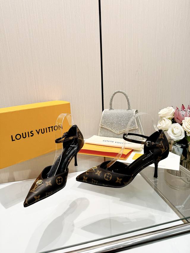 Latest Louis Vuitton runway sandals, updated simultaneously with the official website series, factory direct wholesale: Perfect last + Louis Vuitton's new element buckle design, full of femininity, noble temperament, original mold last, perfect 1:1 shape, high-end quality, imported high-end fabric presents exquisite texture! Material: Imported split-edge beads, imported cow patent leather monogram leather. Lining: High-quality soft sheepskin lining. Insole: Imported goatskin. Custom-made A-grade high-density private mold outsole, luxurious packaging! 7cm painted heel. Sizes: 35-40, 34, 40, 41. Custom orders are non-refundable and non-exchangeable.