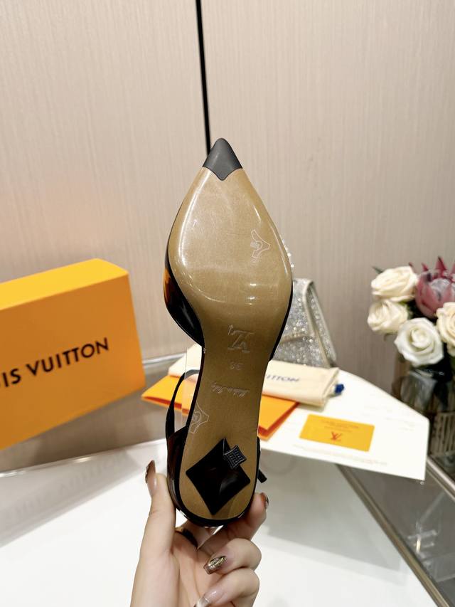 Latest Louis Vuitton runway sandals, updated simultaneously with the official website series, factory direct wholesale: Perfect last + Louis Vuitton's new element buckle design, full of femininity, noble temperament, original mold last, perfect 1:1 shape, high-end quality, imported high-end fabric presents exquisite texture! Material: Imported split-edge bead, imported cow patent leather monogram leather. Lining: High-quality soft sheepskin lining. Insole: Imported goatskin. Custom-made A-grade high-density private mold outsole, luxurious packaging! 7cm painted heel. Sizes: 35-40, 34, 40, 41. Custom orders are non-refundable and non-exchangeable.