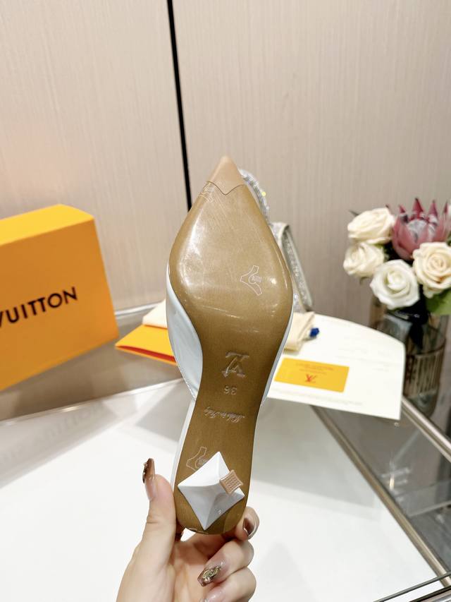 Latest Louis Vuitton runway sandals, updated simultaneously with the official website series, factory direct wholesale: Perfect last + Louis Vuitton's new element buckle design, full of femininity, noble temperament, original mold last, perfect 1:1 shape, high-end quality, imported high-end fabric presents exquisite texture! Material: Imported split-edge beads, imported cow patent leather monogram leather. Lining: High-quality soft sheepskin lining. Insole: Imported goatskin. Custom-made A-grade high-density private mold outsole, luxurious packaging! 7cm painted heel. Sizes: 35-40, 34, 40, 41. Custom orders are non-refundable and non-exchangeable.