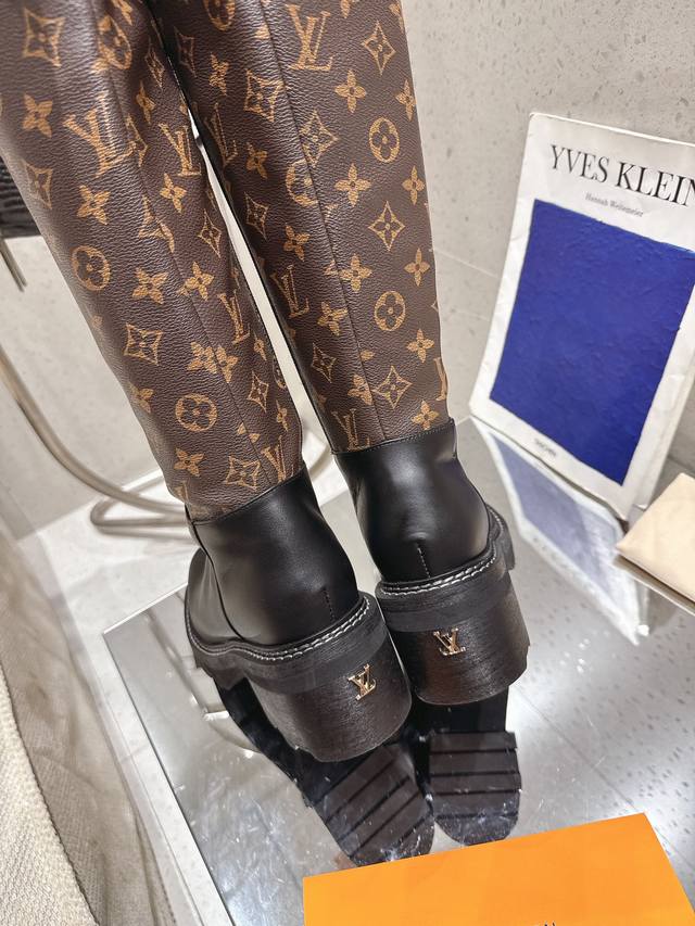 Loui & Vuitto Fall/Winter New Arrival Ankle Boots. Loui boots always look great on foot. The black and monogram print is perfectly balanced! The side features a delicate and unique LV logo metal buckle. They make your legs look incredibly slim. Materials: Imported cowhide leather; Lining: Imported sheepskin; Outsole: Original eco-friendly rubber; Heel height: 3.5cm; Sizes: 35-42 (35, 40, 41, 42 are custom-made and non-refundable).