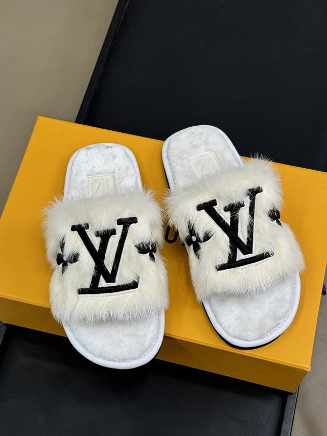 Louis Vuitt Classic Home Slippers. Made of mink fur, exuding luxury. Lightweight and comfortable, genuine mink, with an unparalleled feel. Top-quality, sizes 35-42, sizes 40, 41, 42 are available for custom orders.