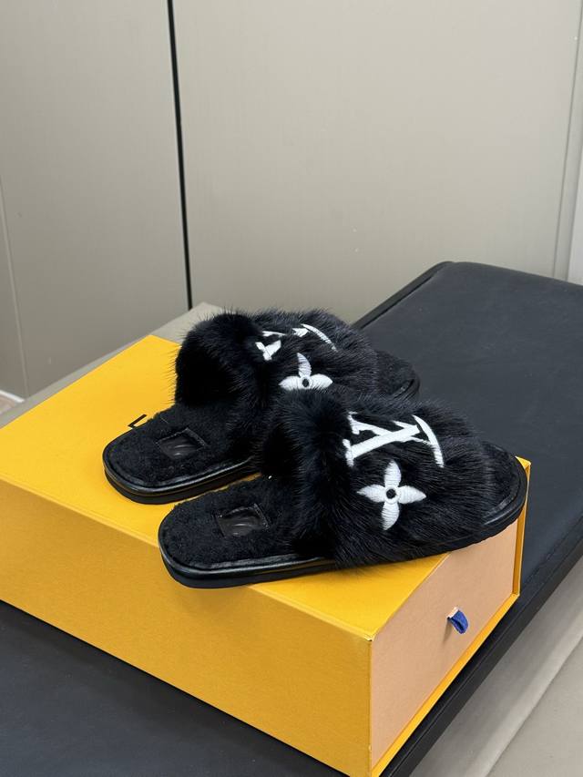 Louis Vuitt Classic Home Slippers. Made of mink fur, exuding luxury. Lightweight and comfortable, genuine mink, with an unparalleled feel. Top-quality, sizes 35-42, sizes 40, 41, 42 are available for custom orders.