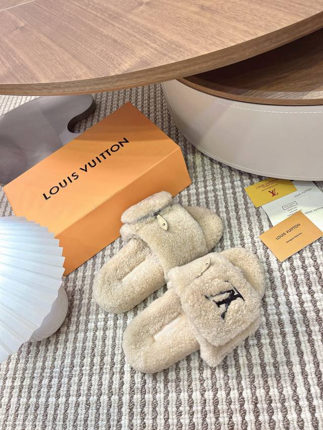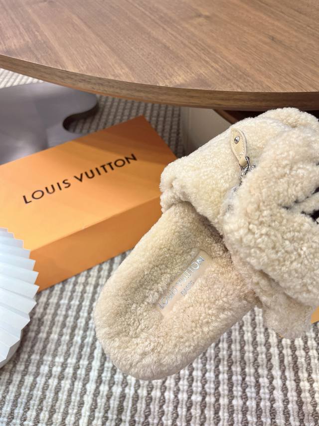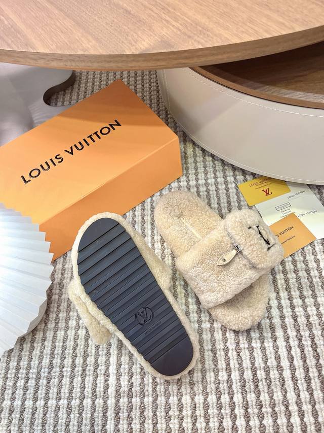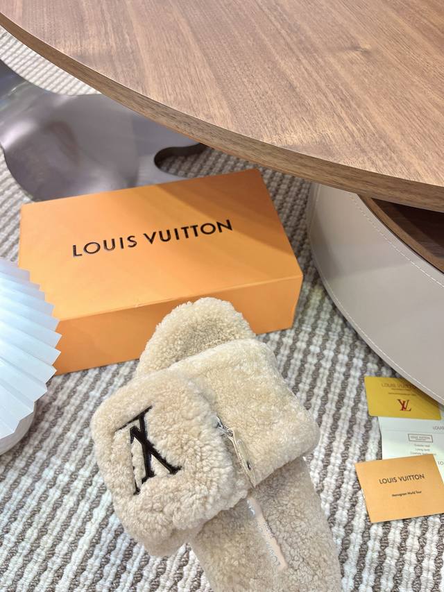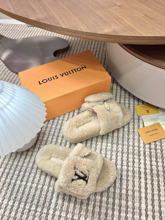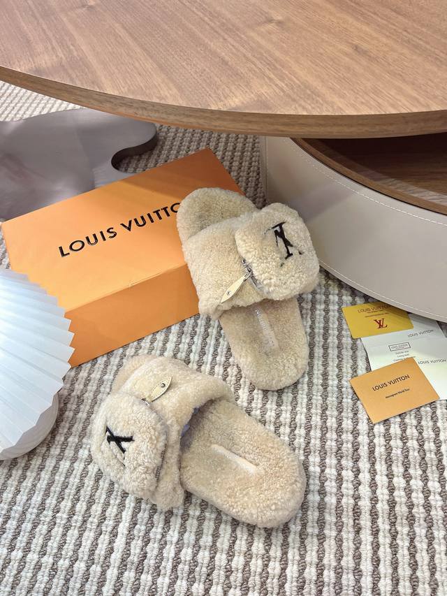 Louis Vuitton 2025 Autumn/Winter New Fashion Velcro Zipper Women's Slippers with Lambswool Logo, Flat Round Toe, Color Block, Open Toe, Home Shoes. Upper: 100% Imported Lambswool. Outsole: Original Mold, Non-Slip, Wear-Resistant Rubber Outsole. Sizes: 35-41, 40-41 (Custom orders are non-refundable). Upper: Wool. Insole: Wool. Outsole: Mold, Non-Slip Rubber Outsole. Sizes: 35-39, 40-41-42 (Custom orders are non-refundable).