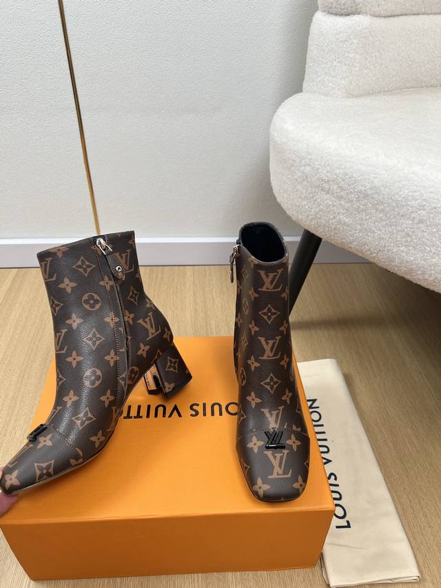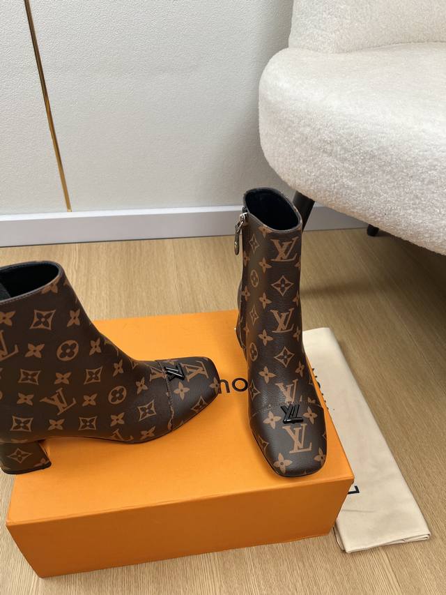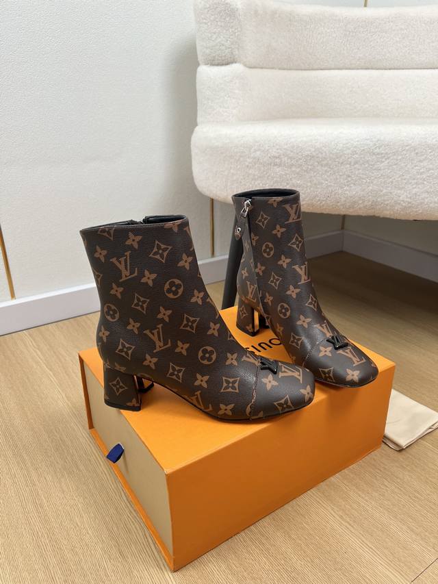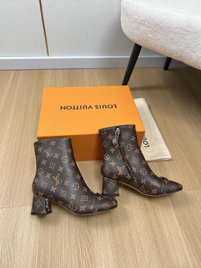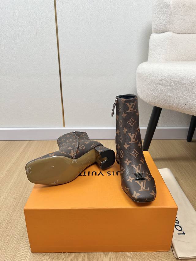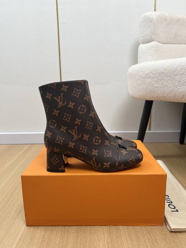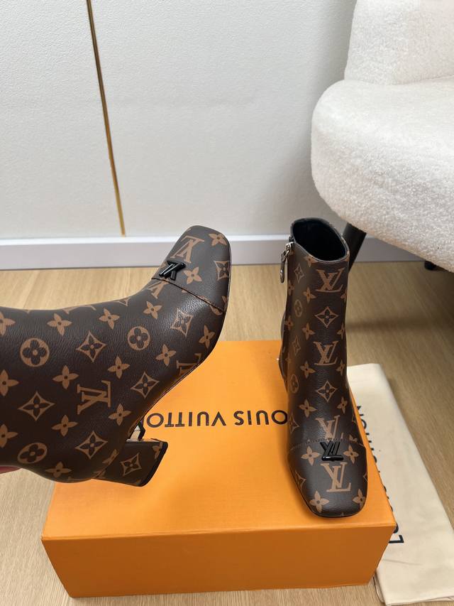 Louis Vuitton 2025 Fall/Winter New Arrival V-Shaped Hollow-Out Square Heel Ankle Boots