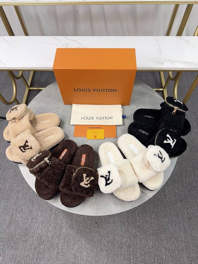 Louis Vuitton 2025 New Wool Slippers - Soft and Fine Wool, Top Quality Pure Fur Straight Hair! Super warm, wearing them feels like walking on clouds. Classic LV monogram embellishments, exquisite and high-end! This elevates the value of these slippers! The sole is an original molded EVA foam non-slip outsole, very comfortable and non-slip, and the sole has a certain thickness for excellent comfort! Upper: Original Australian Wool Lining: Australian Wool Insole: Australian Wool Outsole: Original Foam Sole Height: 3.5cm Packaging: Original Drawer Box Sizes: 35-40, 34, 40, 41 (Custom orders are non-refundable) Color: Official website synchronized color batch: