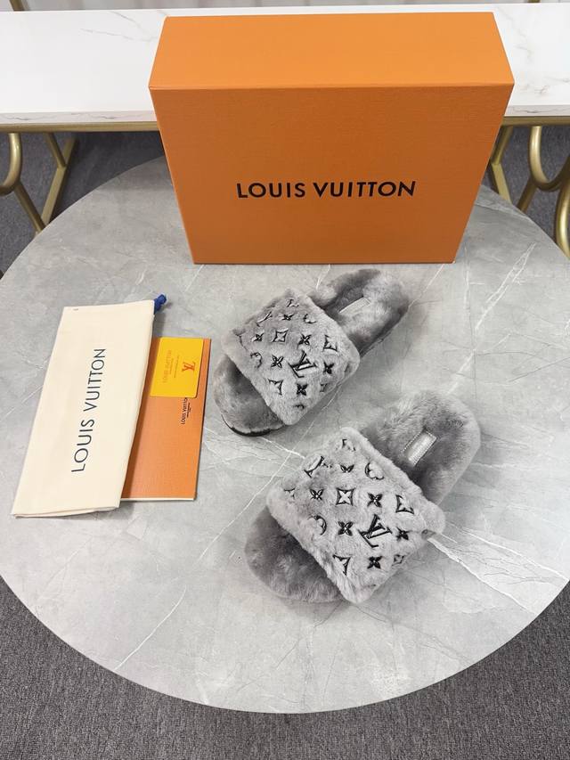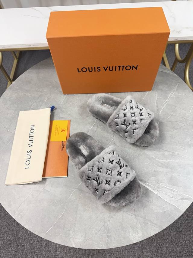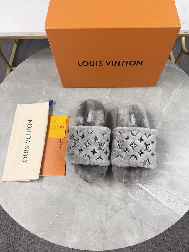 Louis Vuitton 2025 New Wool Slippers - Soft and Fine Wool, Top Quality Pure Wool Straight Hair! Super warm, wearing them feels like walking on clouds. Classic LV monogram embellishments, exquisite and high-end! This elevates the value of these slippers! The sole is an original molded EVA foam non-slip outsole, very comfortable and non-slip, and the sole has a certain thickness for excellent comfort! Upper: Original Australian Wool Lining: Australian Wool Insole: Australian Wool Outsole: Original Foam Sole Height: 3.5cm Packaging: Original Drawer Box Sizes: 35-40, 34, 40, 41 (Custom orders are non-refundable) Color: Official website synchronized color batch: