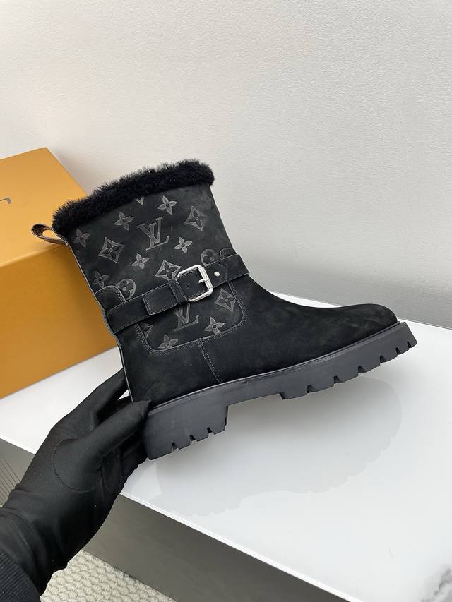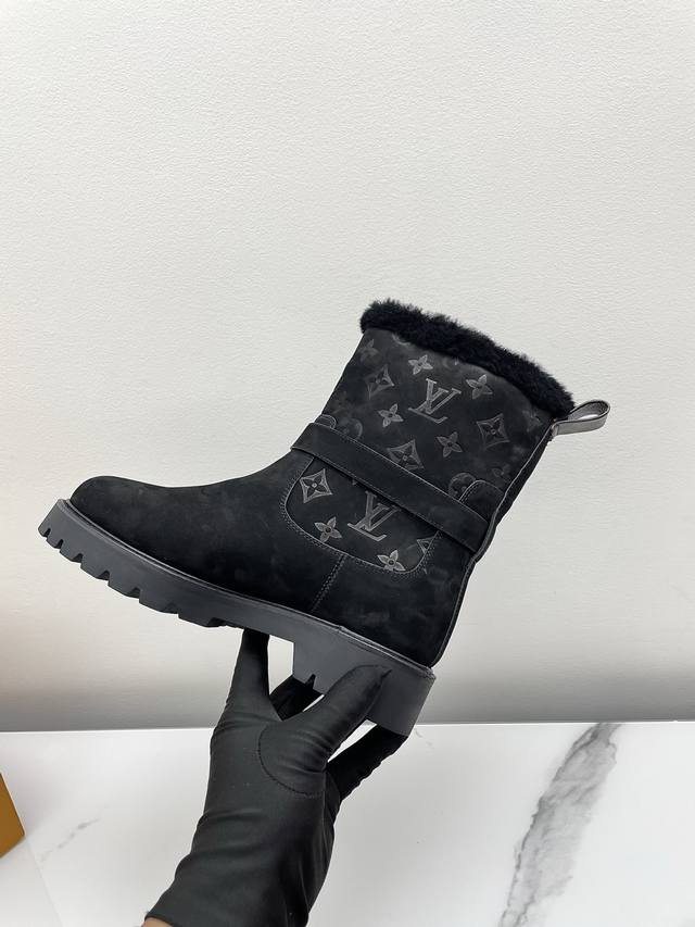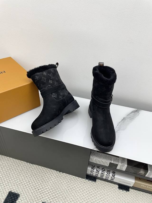 Louis Vuitton 2025 Spring/Summer New LV Winter Ski Collection Monogram Snow Boots DDD Highly recognizable! Soft sheepskin lining for maximum warmth, thick rubber sole for slip resistance and a 6cm height boost, perfect for cold weather. Easy to put on and take off, stylish with jeans or a down jacket. Comfortable and practical, a must-have for winter outings! DDD Material: Suede DDD Lining: Original sheepskin lining DDD Outsole: Oxford sole with genuine leather welt DDD Size: 35-39 40. Custom orders are non-refundable and non-exchangeable DDD