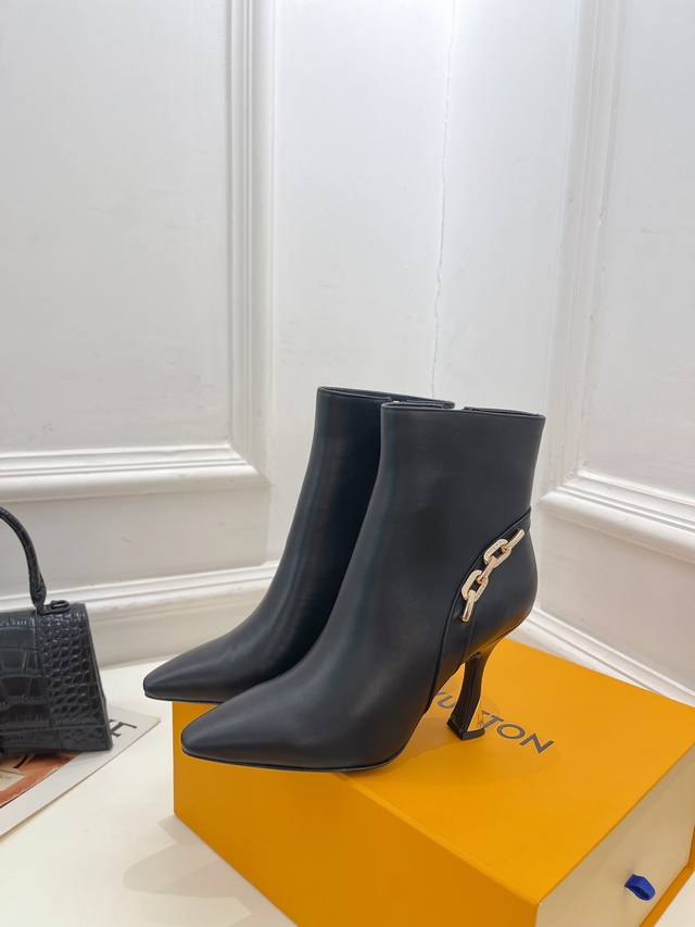 Boutique's Latest Square Toe Metal Heel Ankle Boots, High-Quality Item