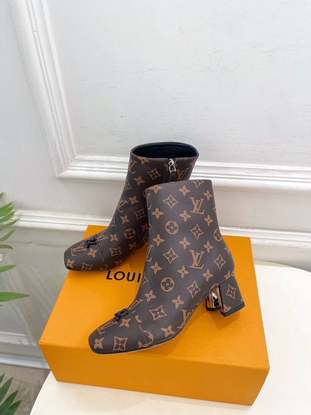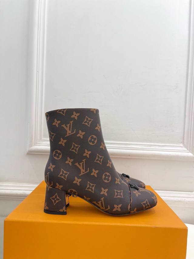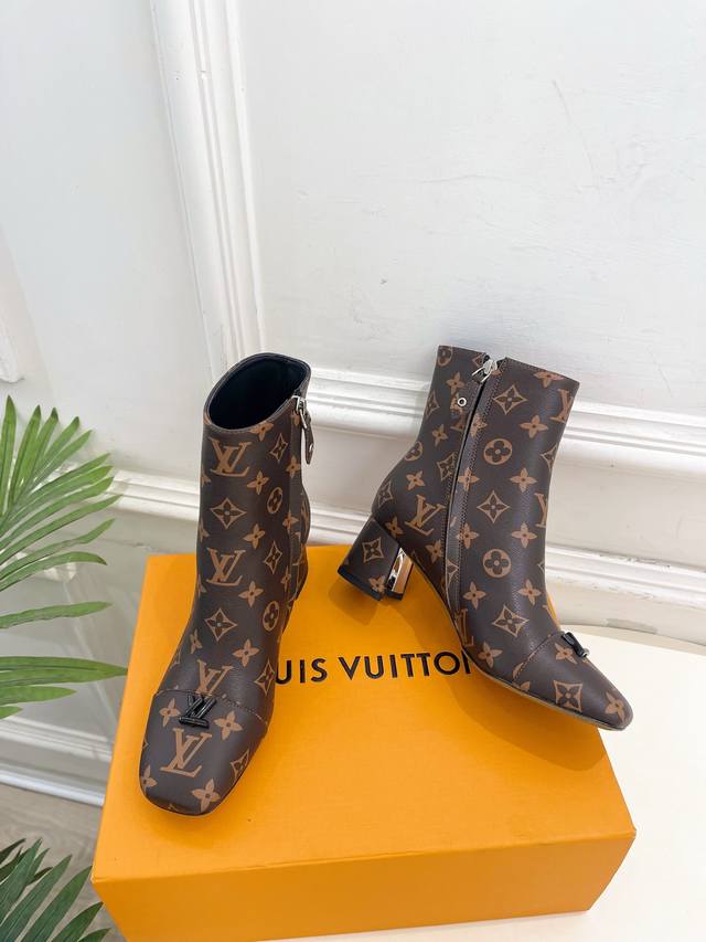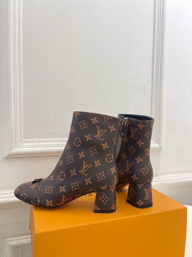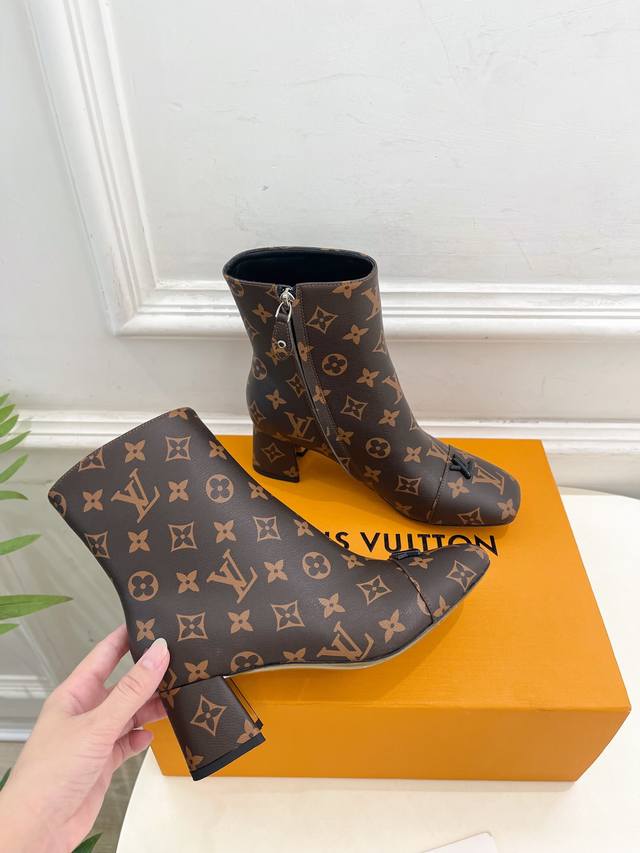Boutique's Latest Swing V-Shaped Hollowed-Out Square Heel Ankle Boots, High-Quality Item