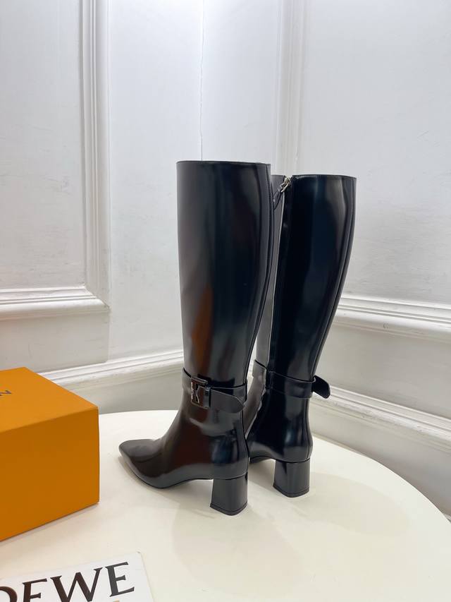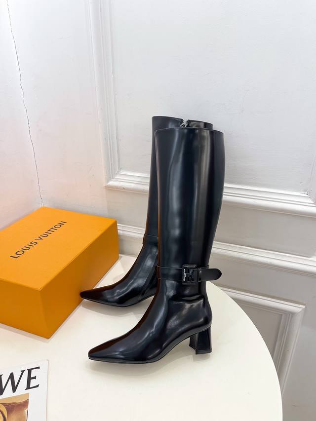 Boutique's Latest Fusee Square Buckle Side Zipper Long Boots, Top-Tier Item! High-End Feel! A Must-Have for Bloggers at Home and Abroad, Retro Yet Stylish, Looks Amazing on the Feet! Official Website Featured Style