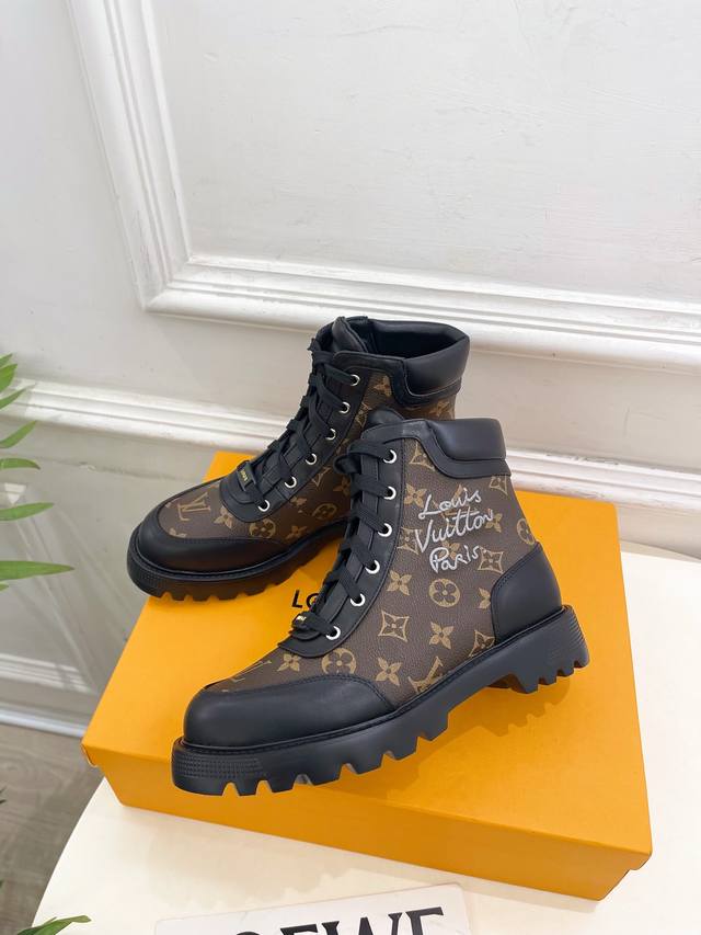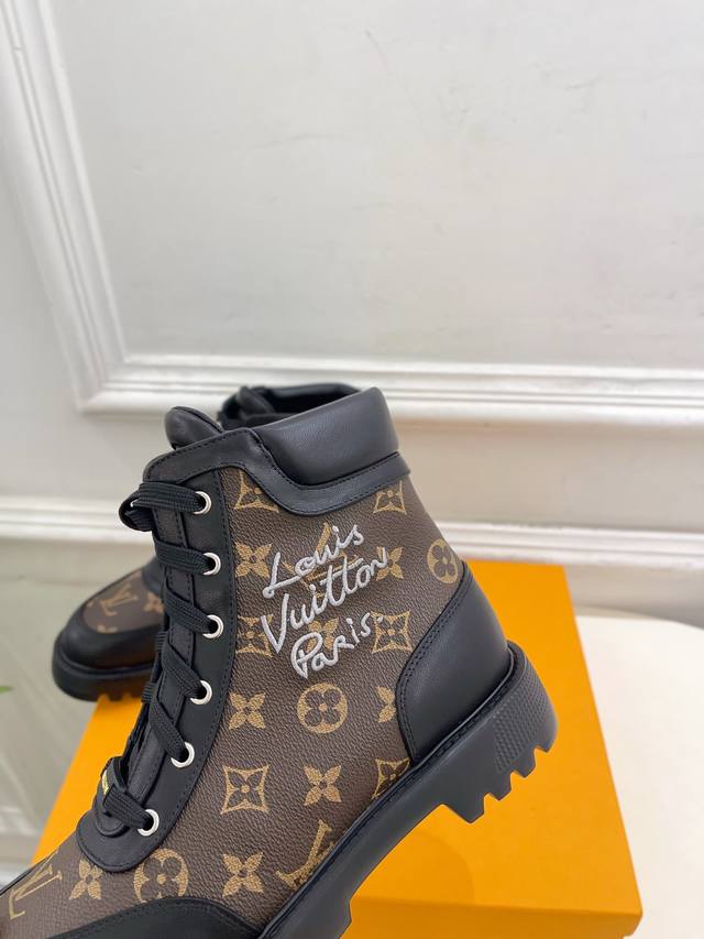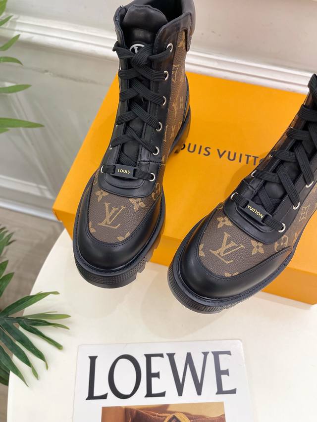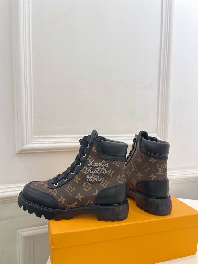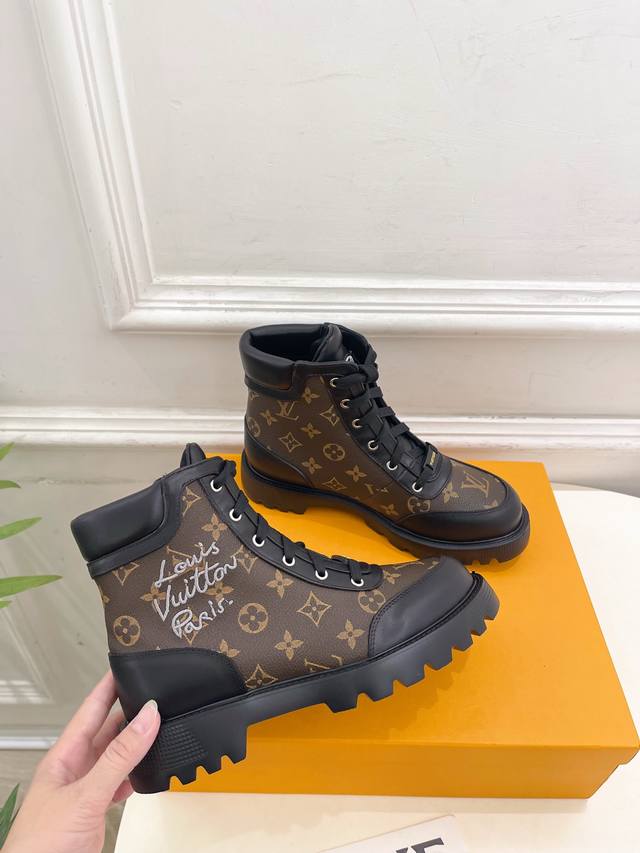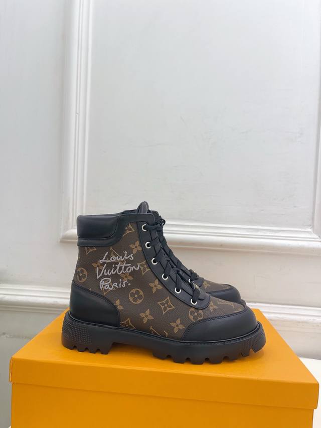 The latest classic monogram lace-up Martin boots/ankle boots, a must-have item from the boutique, top-tier quality! Extremely high-end! A must-have for bloggers both domestically and internationally, retro yet stylish, and looks amazing on! Official website featured style