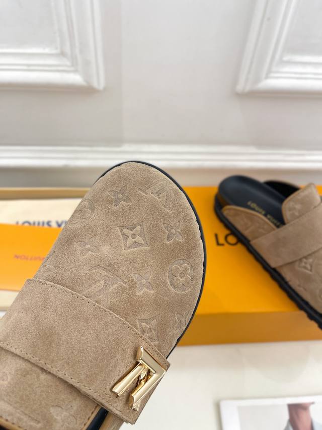 The latest LV Cosy embossed mule slippers, a top-quality item, now available! High-end feel! A must-have for bloggers both domestically and internationally, retro yet stylish, and looks amazing on! Official website featured style