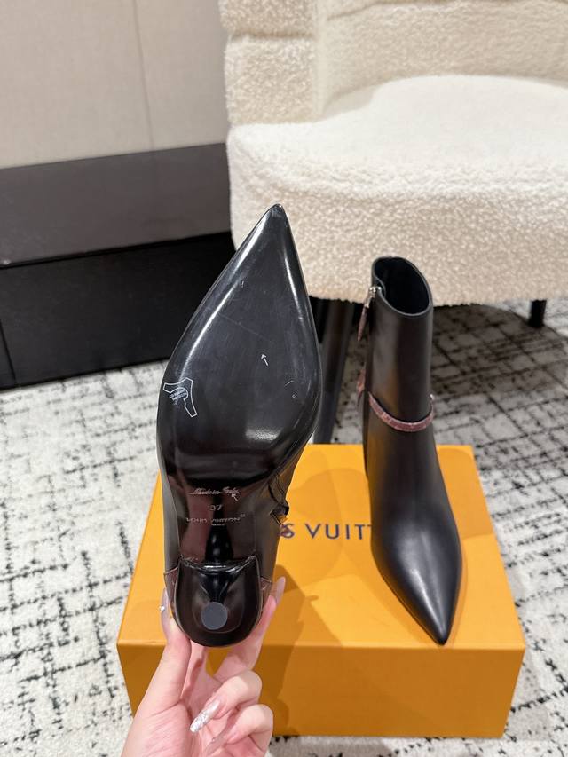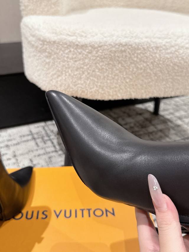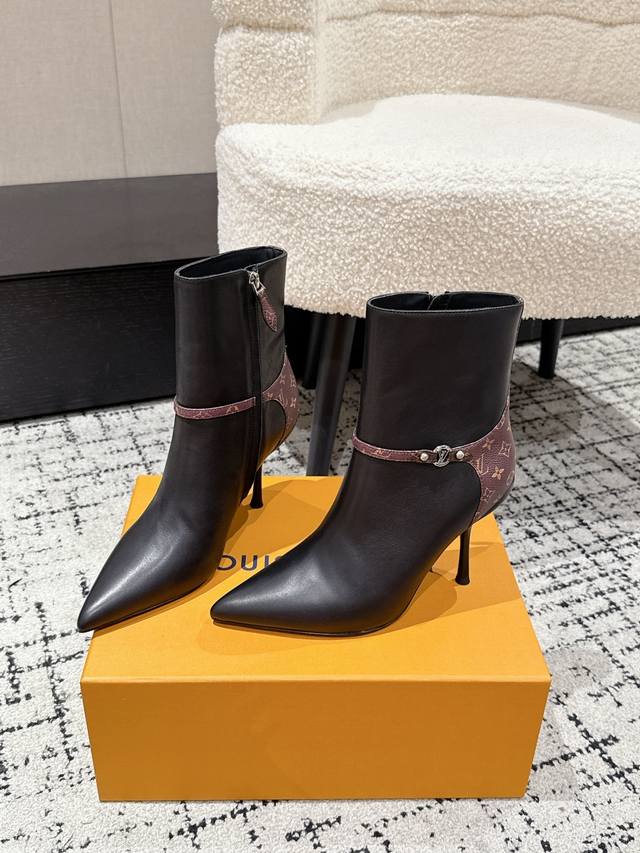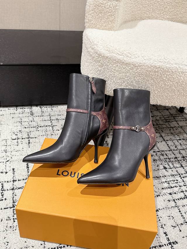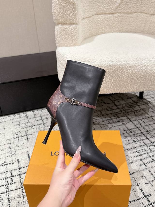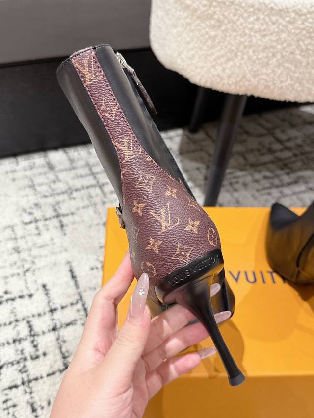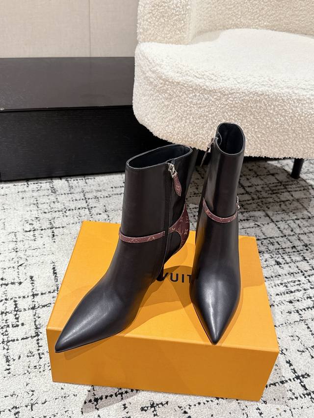 Louis Vuitton 25 Early Autumn New Arrival Lv Legacy Ankle Boots Pointed Toe High Heeled Short Boots with Side Zipper and Monogram Canvas Leather Strap