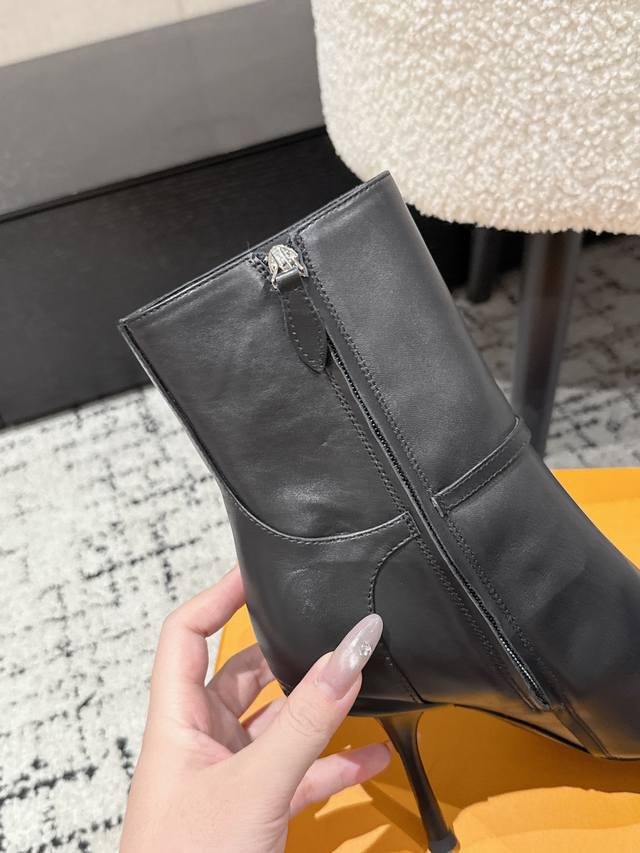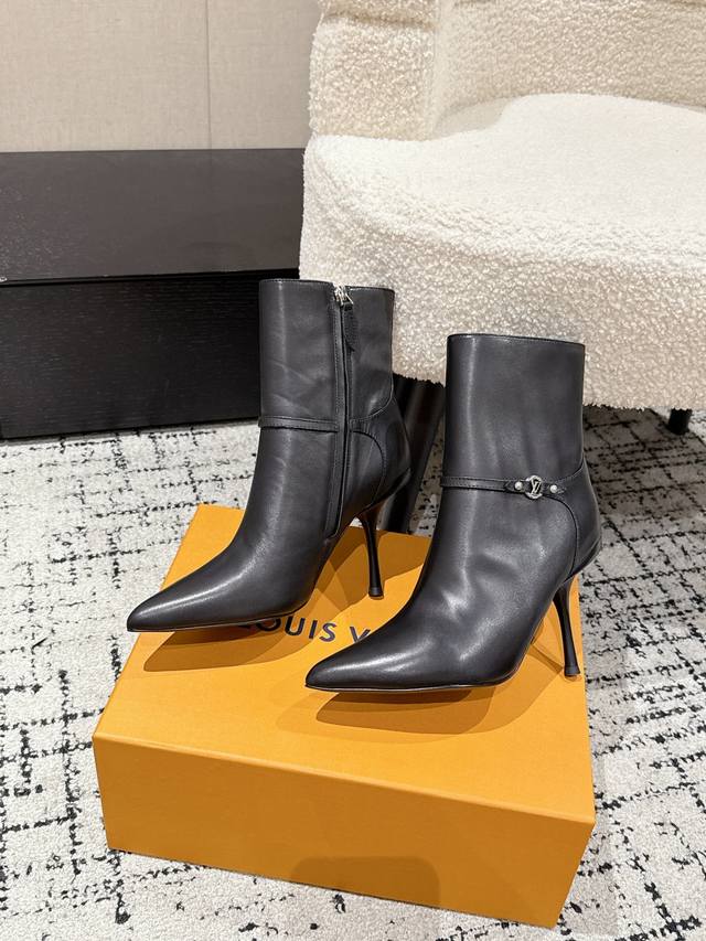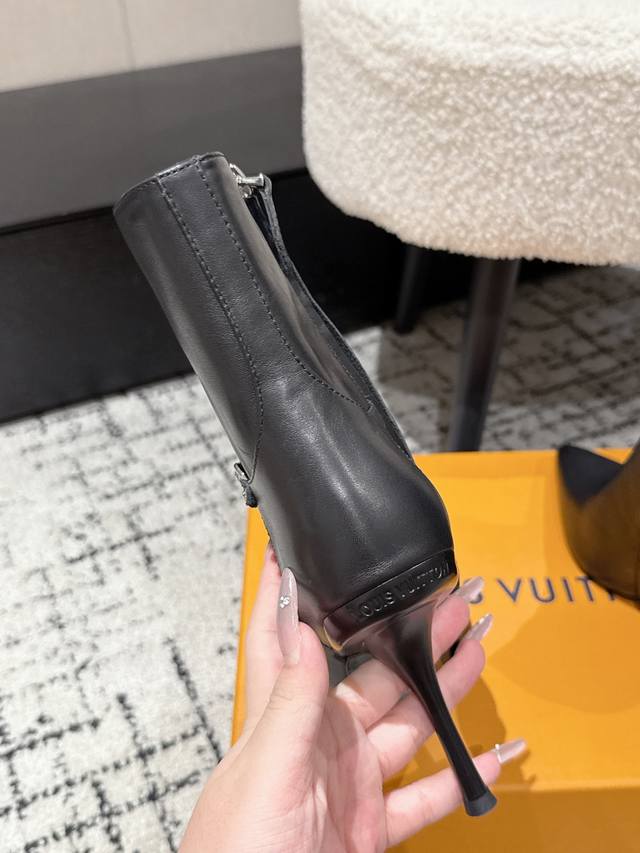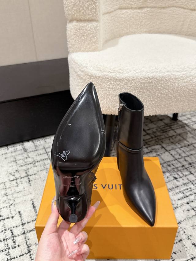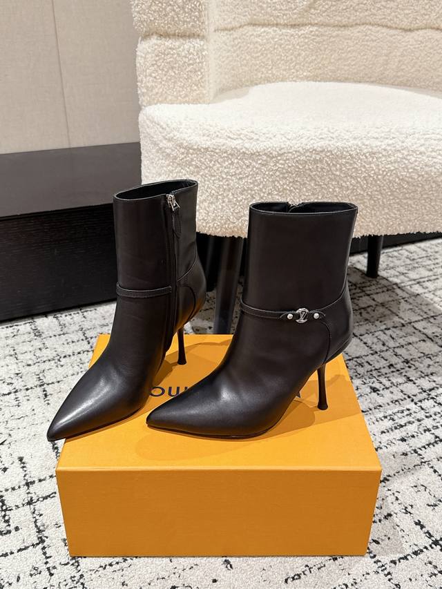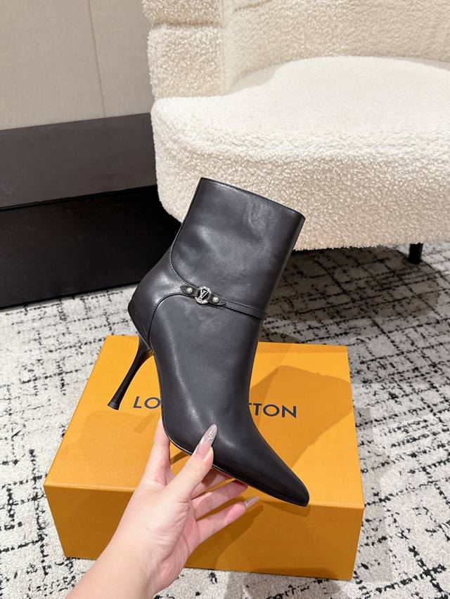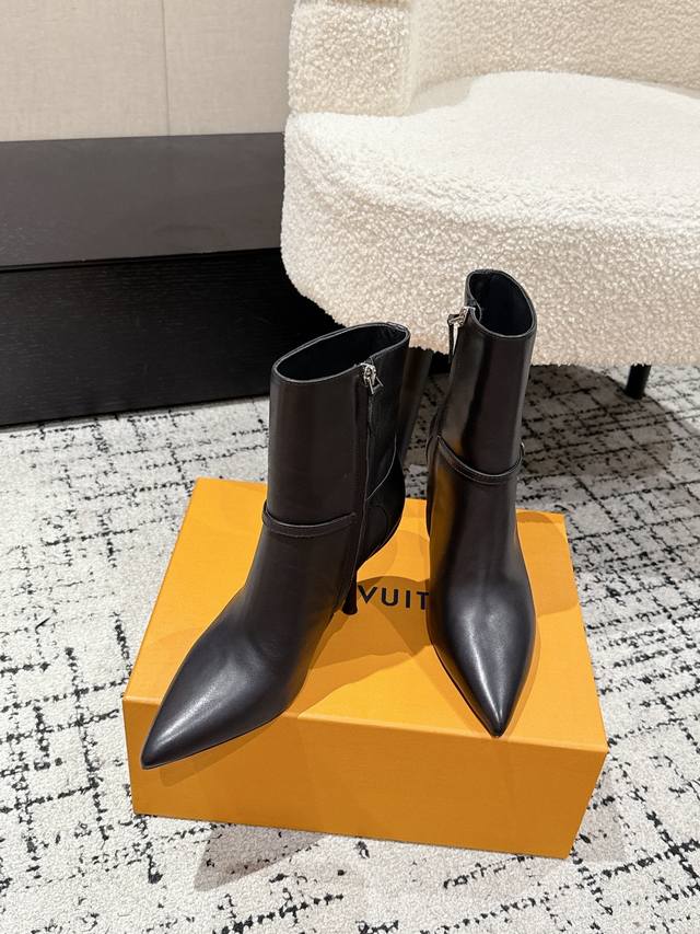 Louis Vuitton 25 Early Autumn New Arrival Lv Legacy Ankle Boots Pointed Toe High Heeled Short Boots with Side Zipper and Monogram Canvas Belt