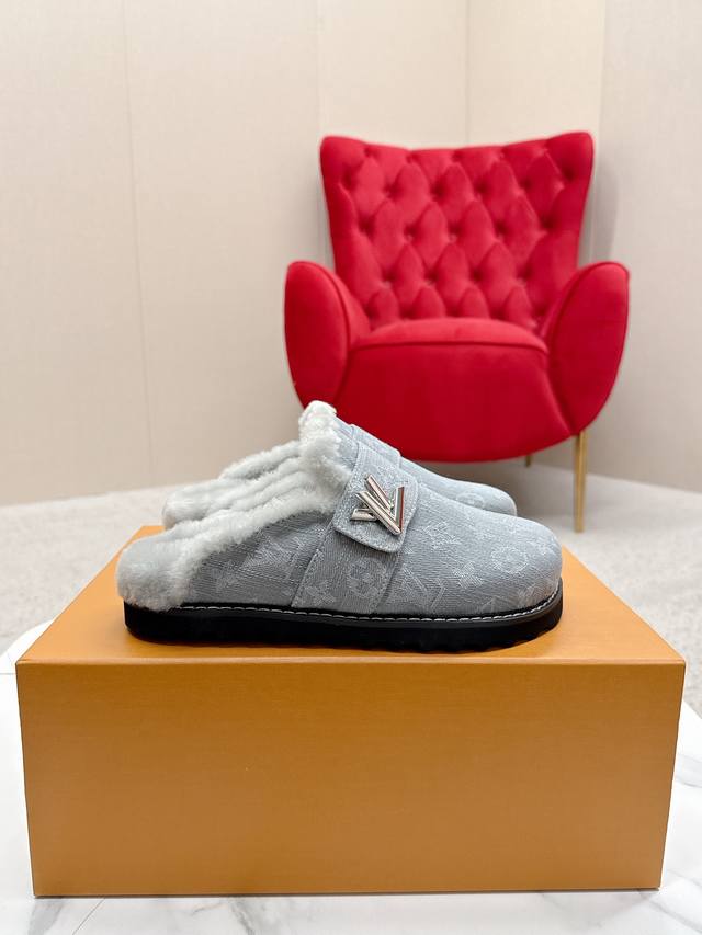 Louis Vuitton 25 Fall/Winter New Arrival - Latest Monogram Canvas Mule Wool Slippers, Top Pick at Boutiques! High-end quality, perfect for personal shoppers! A must-have for bloggers both domestically and internationally, retro yet stylish, and looks amazing on! Official website featured style