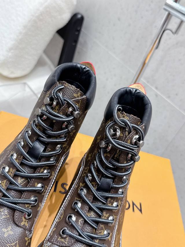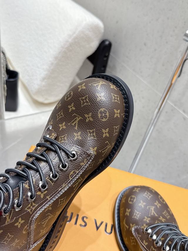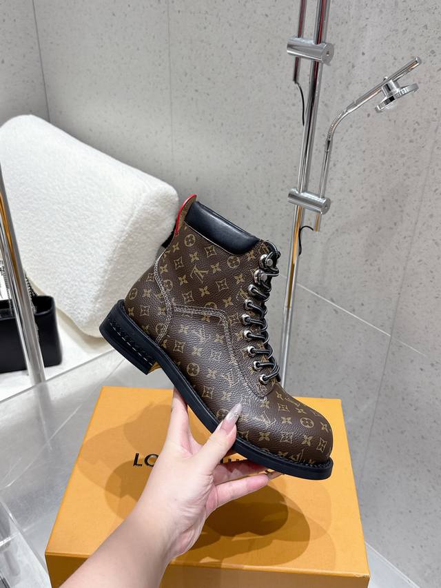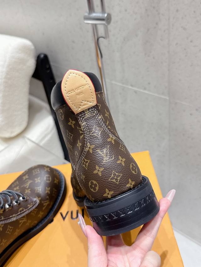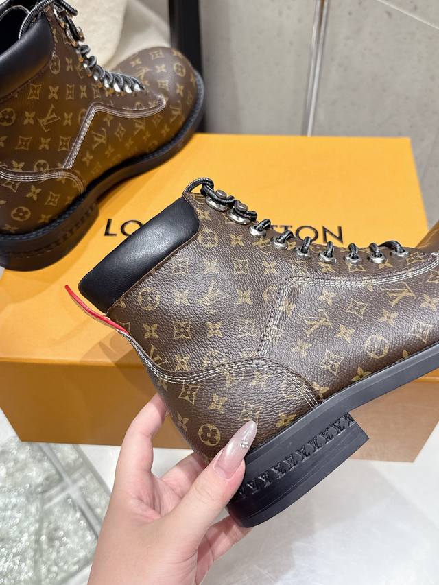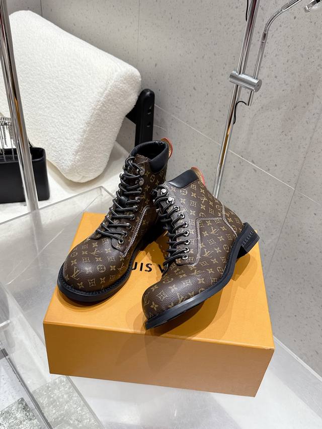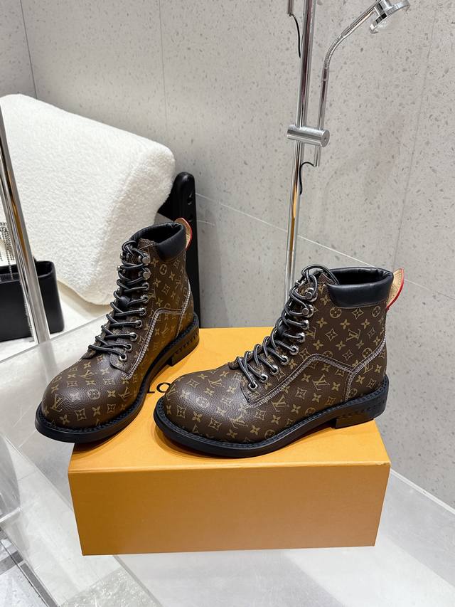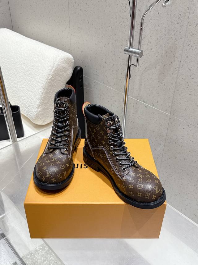 Louis Vuitton 25Ss autumn and winter new Lv couple style round toe lace-up Martin boots short boots nude boots