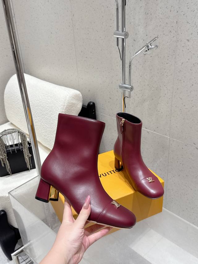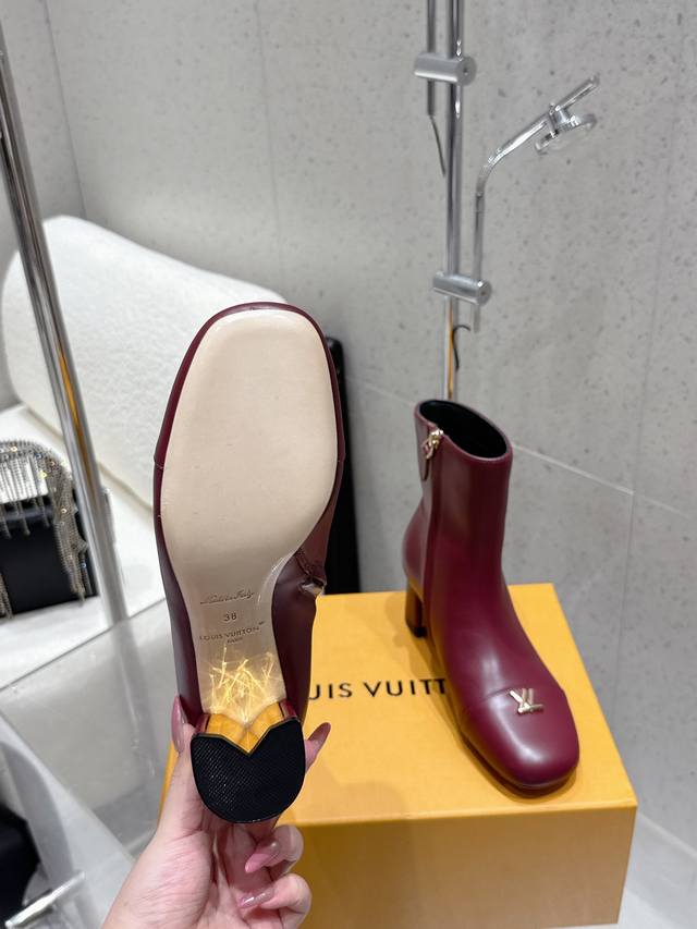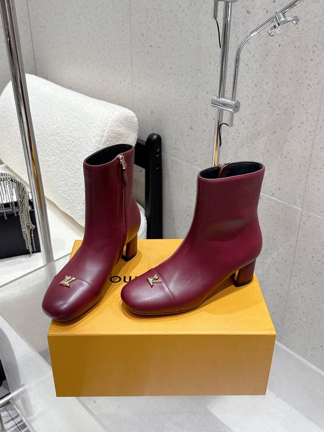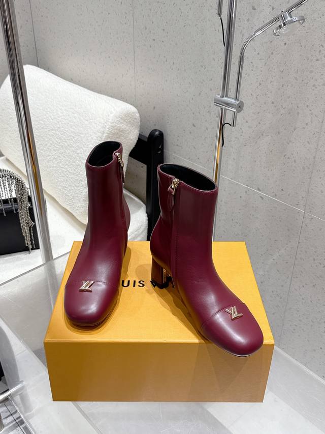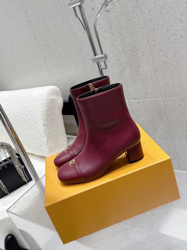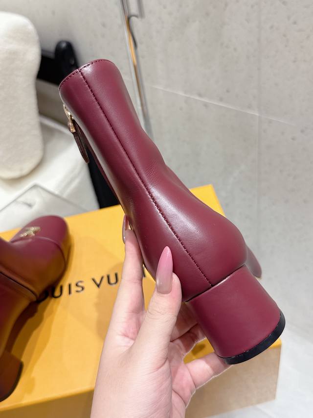 Louis Vuitton 25Ss Fall/Winter New Arrival LV Round Toe High Heel Side Zipper Ankle Boots Upper: Calfskin Lining/Insole: Sheepskin Sole: Italian Genuine Leather Outsole Heel Height: 5.5cm Sizes: 35-39 Sizes 40 and 41: Custom-made, no returns or exchanges