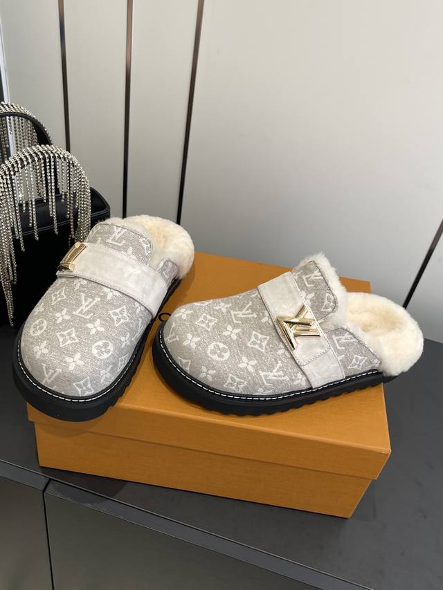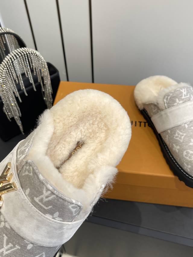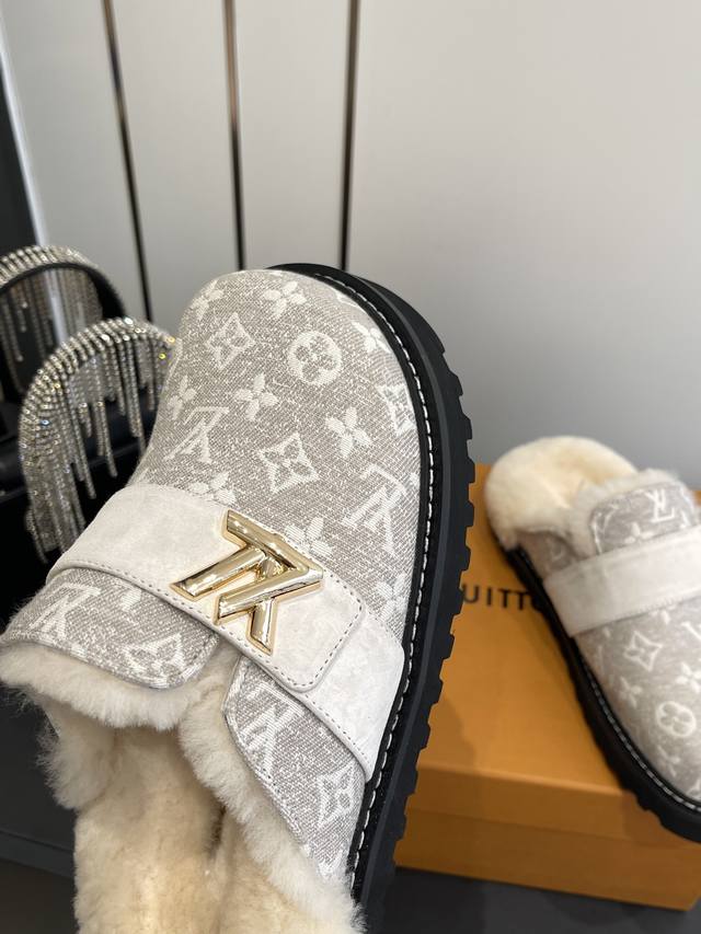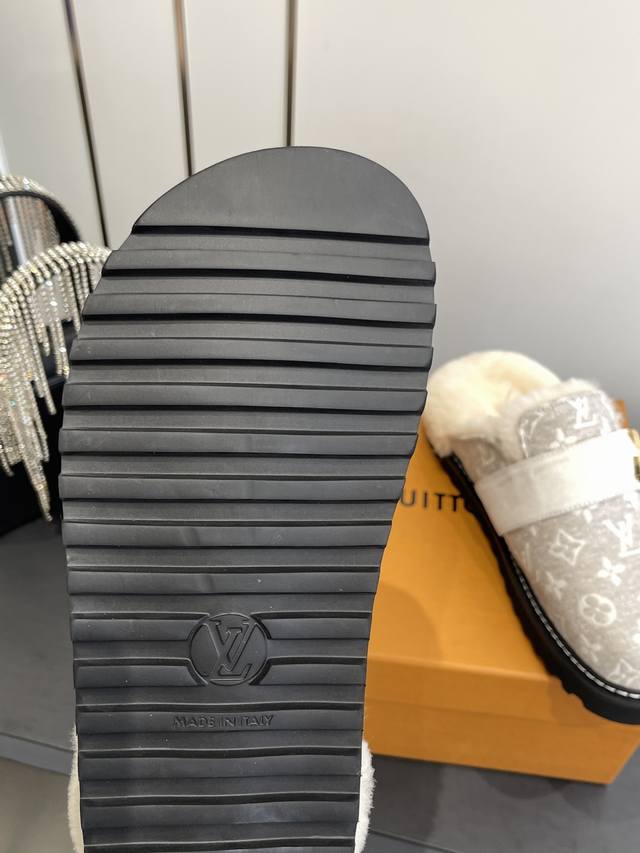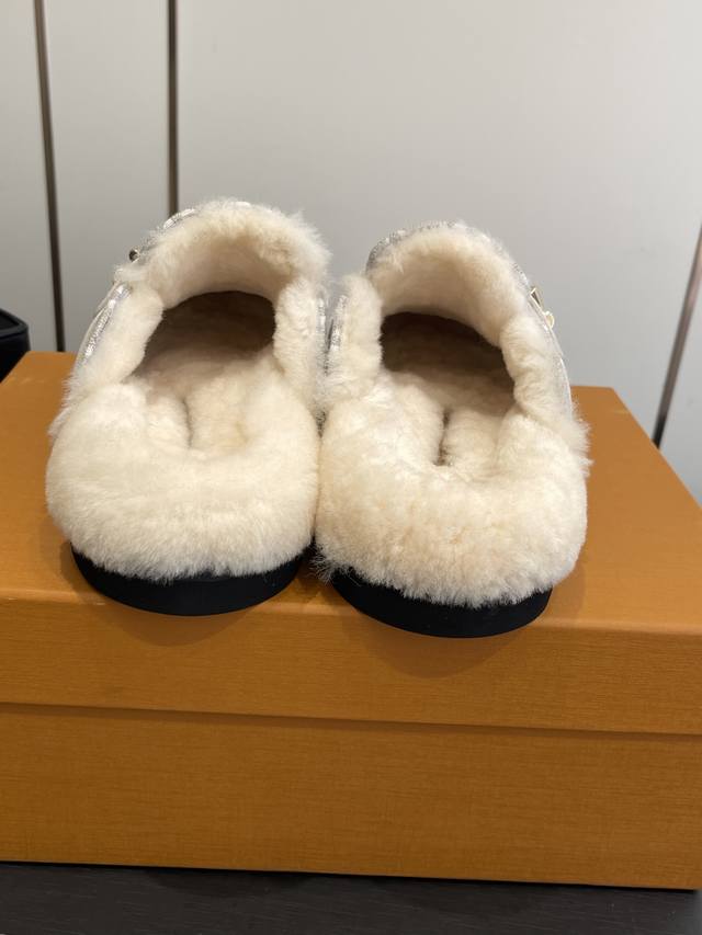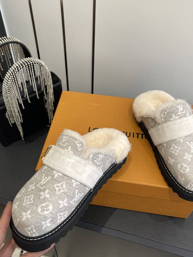 Louis Vuitton 25Ss Fall/Winter Wool Muffins. The Birkenstock silhouette blends all the elements of fashionable style. The upper is hand-stitched with leather strips, showcasing the charm of handcrafted work. The shearling lining is incredibly comfortable; wear it with socks. The foam sole provides a lightweight and comfortable feel. Sizes: 35-40. Size 40 is custom-made.