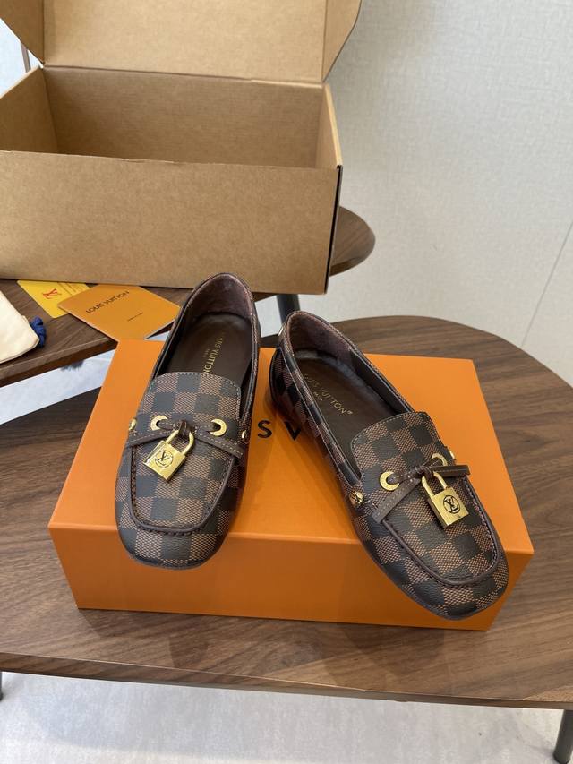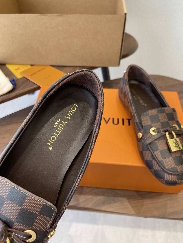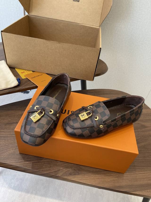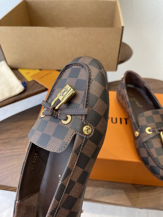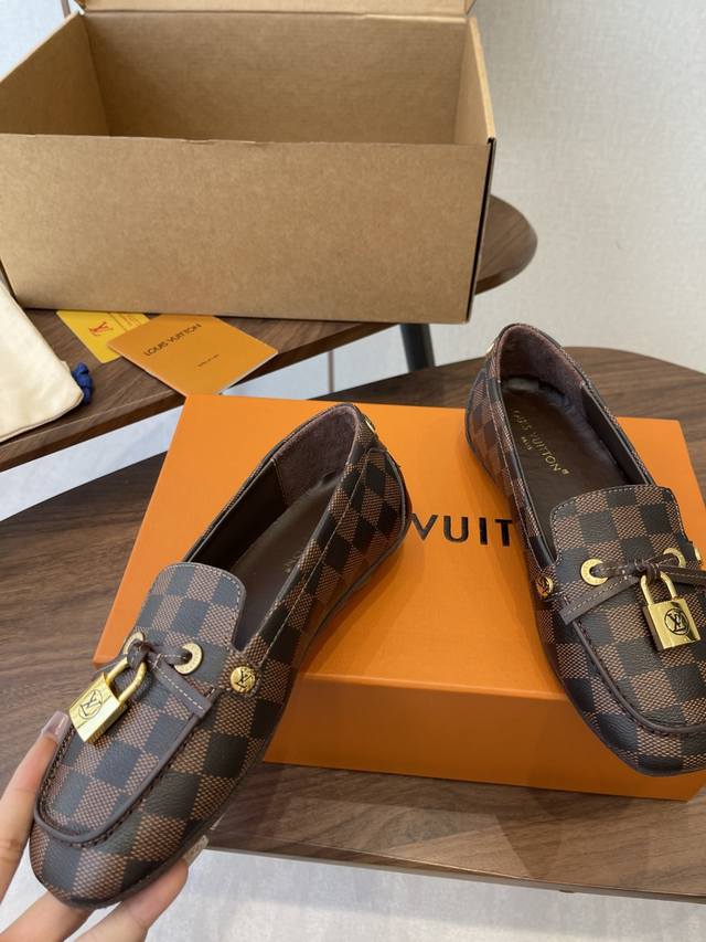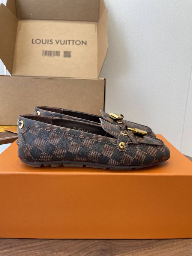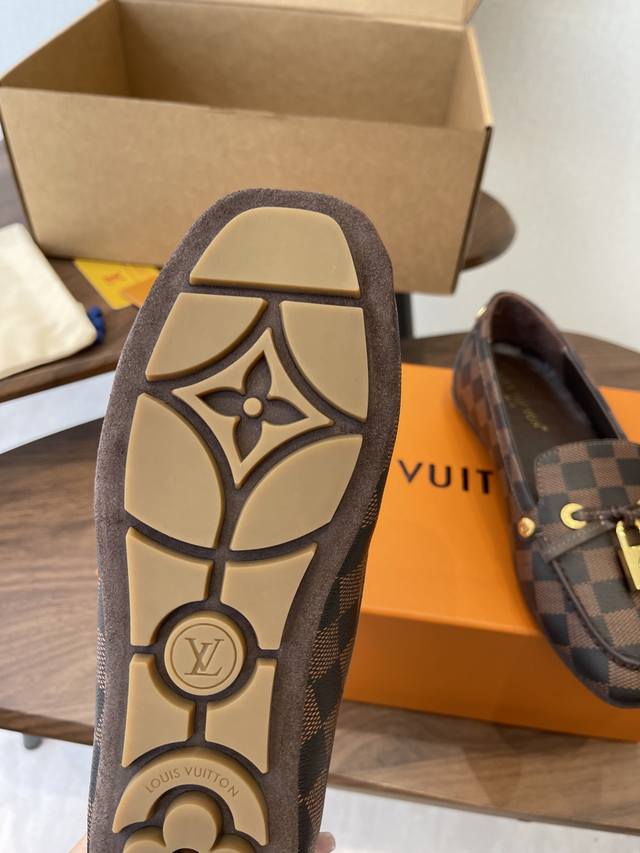 Louis Vuitton 25Ss flat loafers/driving shoes, made with premium cowhide, featuring a lightweight and comfortable moccasin construction with a hand-stitched upper, accented with the Louis Vuitton Cicle logo and patterned lace tips. The butterfly-inspired design exudes luxury and sophistication, perfectly embodying the brand's luxurious style. The lining is made of water-dyed cowhide, and the outsole features original A-grade rubber granules. Sizes: 35-42, 40, 41, 42. Custom orders are non-refundable and non-exchangeable.