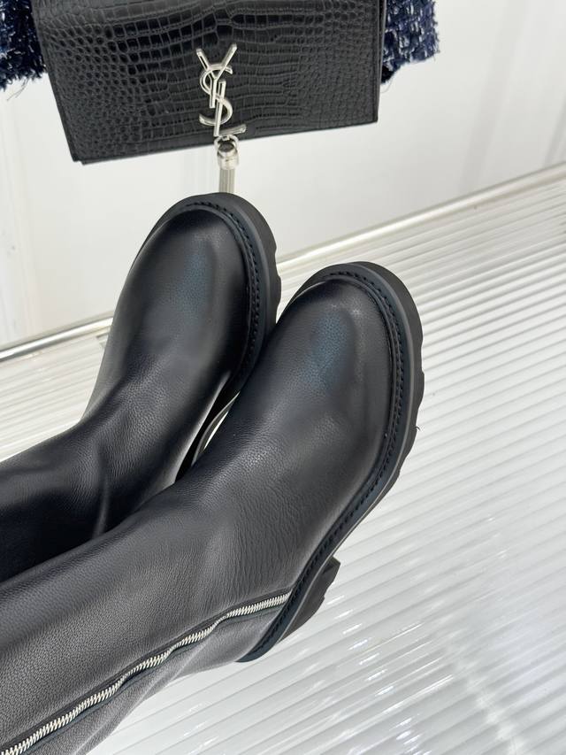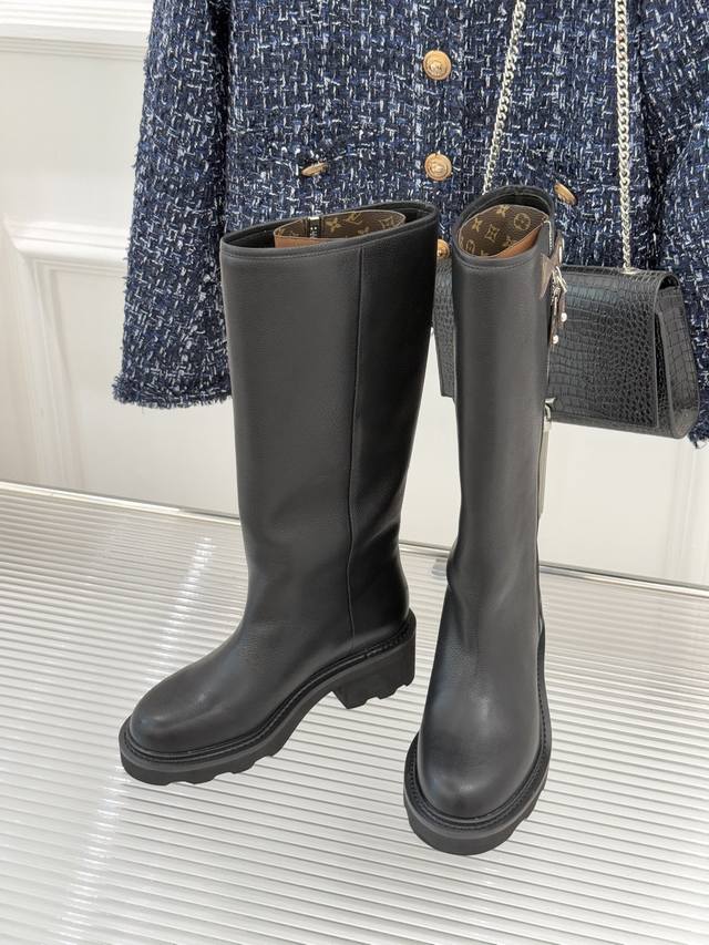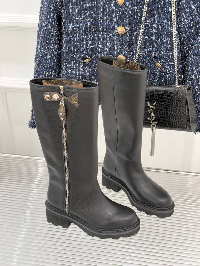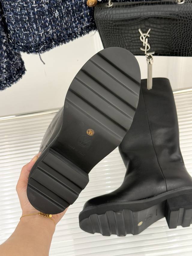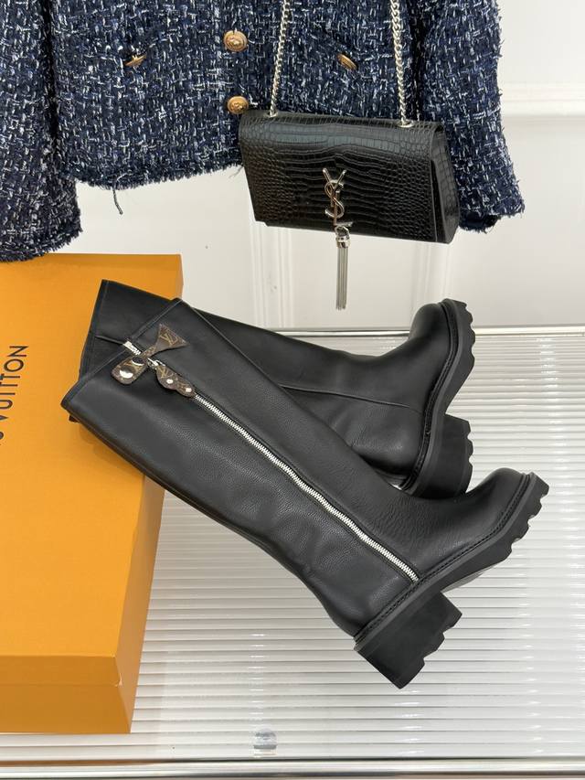 Louis Vuitton 25Wf Autumn/Winter New Side Zipper Thick-Soled Riding Boots. Made with original calfskin upper and sheepskin lining. Original molded custom anti-slip outsole. Size: 35-41 [40 & 41 customizable].