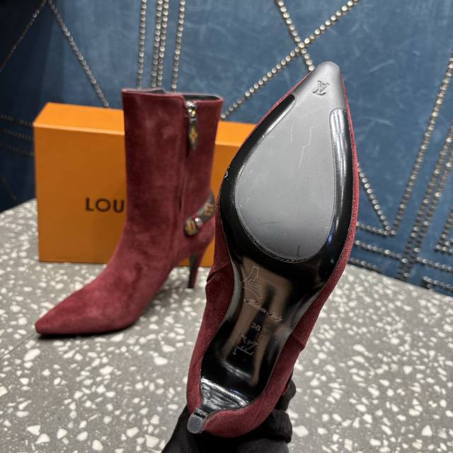 Louis Vuitton boots series launches its highest-end 1:1 replica. Elegant colors, original shoe last development, smooth overall lines, original buckles, symmetrical lettering, and fine edge finishing. Every detail is meticulously crafted. Upper: Cowhide leather with special brand materials; Buckles: Original mold; Lining: Mixed sheepskin; Outsole: Genuine leather with color matching; Heel height: 9.5cm; Boot height: 16-inch high boots, 6-inch short boots; Sizes: 35-42, 40, 41, 42 (non-refundable/exchangeable). Price: [Price not specified].