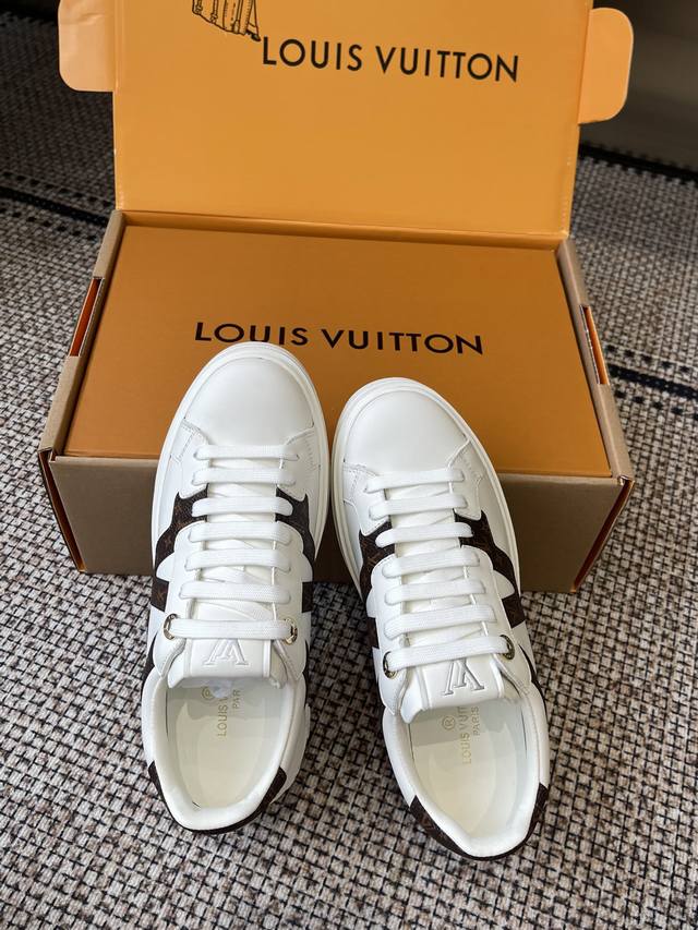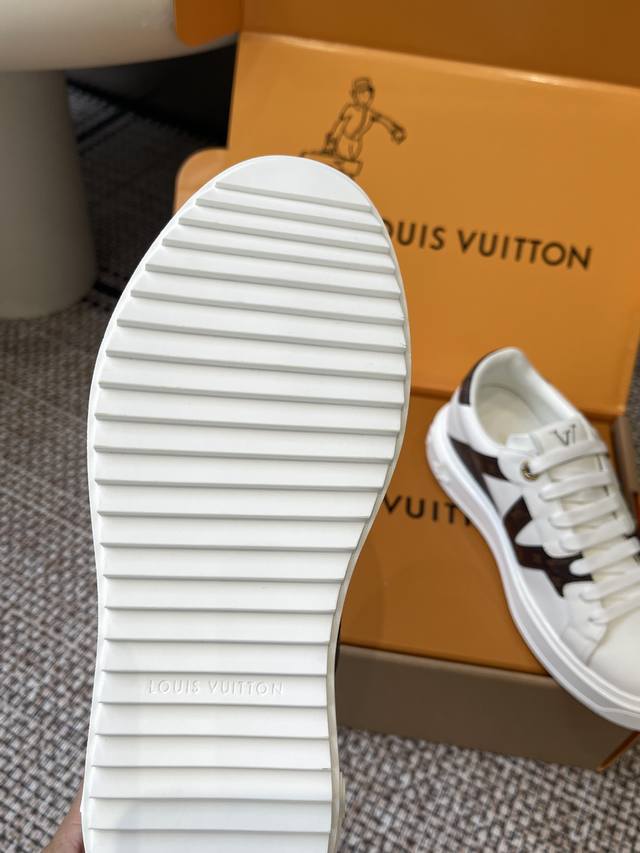Louis Vuitton casual white sneakers are highly recommended by many influencers and fashion bloggers. The simple shoe shape is grid-like, with the brand logo embossed in monogram stitching, and the Lv Circle rubber patch on the tongue has rich details. The upper is made of original custom silk cowhide, and the lining is water-dyed cowhide. The one-piece molding process is Eva footrests with original molds and TPU outsole. Sizes: 35-41, 40, 41, made to order.