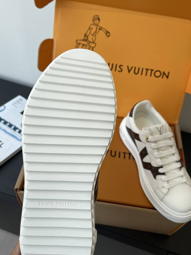 Louis Vuitton casual white sneakers are highly recommended by many influencers and fashion bloggers. The simple shoe shape is grid-like, with the brand logo embossed in monogram stitching, and the Lv Circle rubber patch on the tongue has rich details. The upper is made of original custom silk cowhide, and the lining is water-dyed cowhide. The one-piece molding process is Eva footrests with original molds and TPU outsole. Sizes: 35-41, 40, 41, made to order.