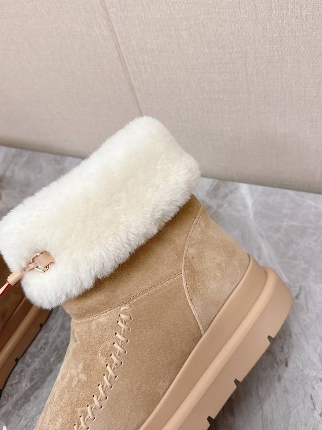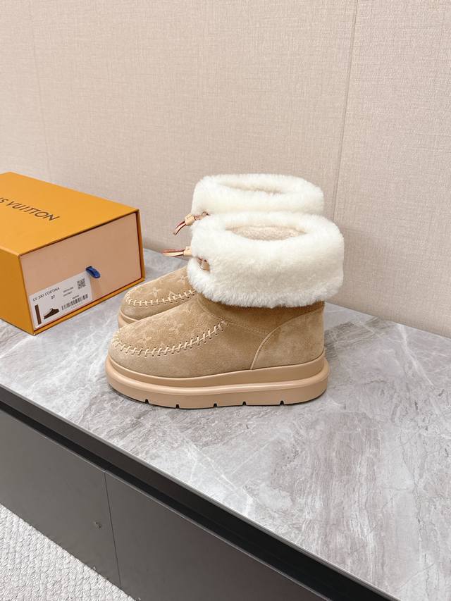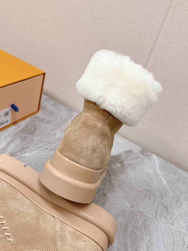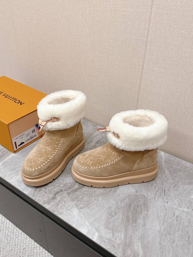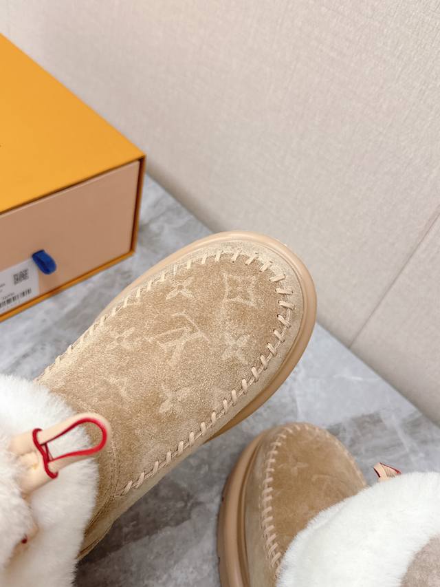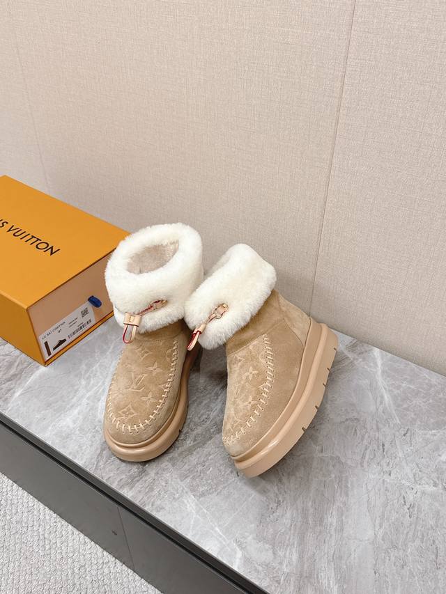 Louis Vuitton Fall/Winter Latest Runway Style Furry Snow Boots DDD Highly recommended by celebrities and fashion bloggers, this is one of the most frequently seen items on the LV runway. The trendy panel design combined with the hottest leather creates a unisex casual style that's both cool and relaxed. Every detail showcases the brand's style, exuding a high-end and fashionable feel. It can be paired with various styles of clothing. The upper is made of imported high-gloss cowhide, the lining is genuine wool for extra warmth, and it features original molded foam construction and a unique outsole. Sizes: 35-41, 40, 41. Custom orders are non-refundable. DDD