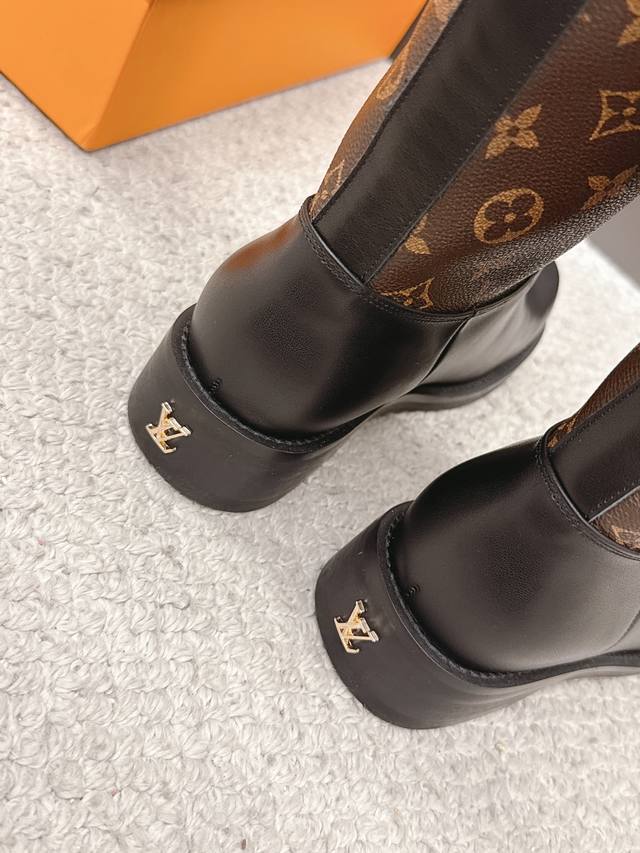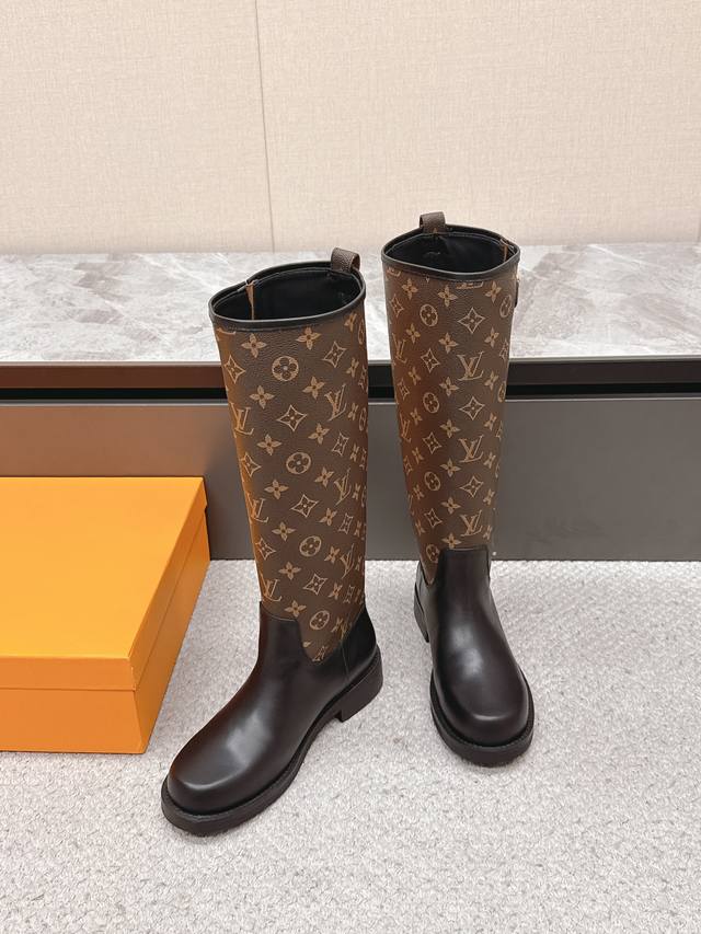 Louis Vuitton Fall/Winter Newest Long Boots. Highly recommended by celebrities and fashion bloggers. A 1:1 replica, perfectly tailored for the latest trendy designs. These boots are a hit online, looking cool and stylish. The unique design at the boot shaft is eye-catching and flattering, slimming the legs. Upper material: Grained calfskin. Lining material: Mixed sheepskin. Original mold. Eva outsole. Sizes: 35-40, 41, 42. Custom orders, no returns or exchanges.