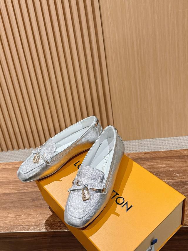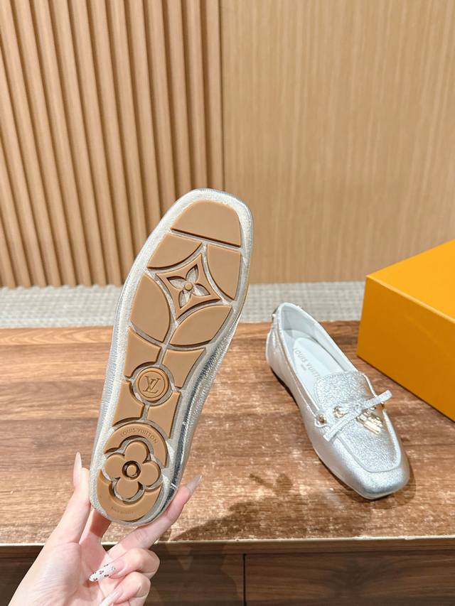 Louis Vuitton flat loafers, crafted from premium cowhide, feature a lightweight and comfortable moccasin construction with a hand-sewn upper. Embellished with the Louis Vuitton logo and inscribed lace tips, the butterfly-embellished design is luxurious and elegant. The shoe perfectly embodies the brand's luxurious style. Lined with water-dyed cowhide, the shoe features an original A-grade rubber outsole. Sizes: 35-39, 40, and 41. Custom orders are non-refundable.