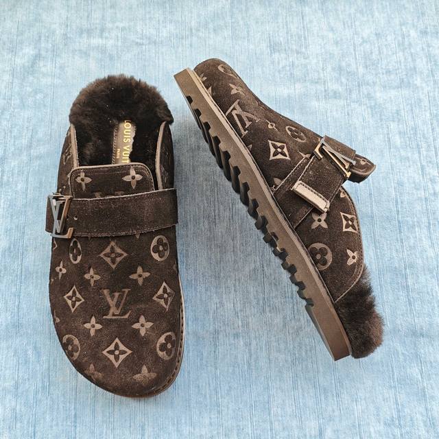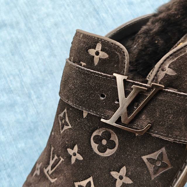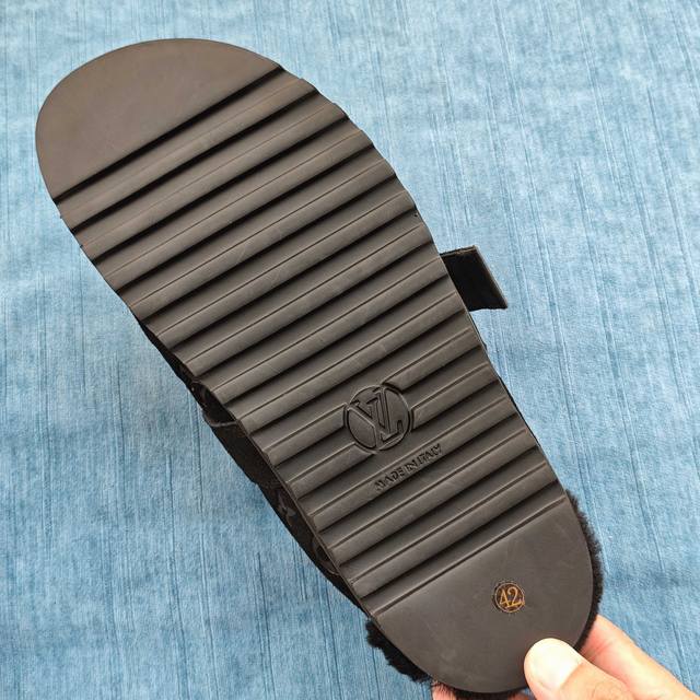 Louis Vuitton (LV) Couple Wool Slippers: Exuding Luxury and Sophistication. These classic LV closed-toe slippers are a high-quality replica! Key advantages are clear: Original jacquard weave + suede upper for a delicate texture and an instantly sophisticated look; 100% pure wool lining, making them feel like walking on clouds when worn barefoot
