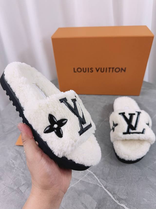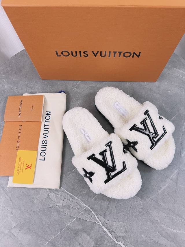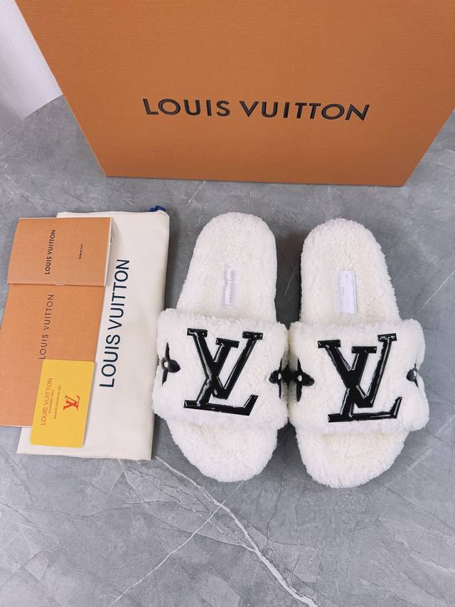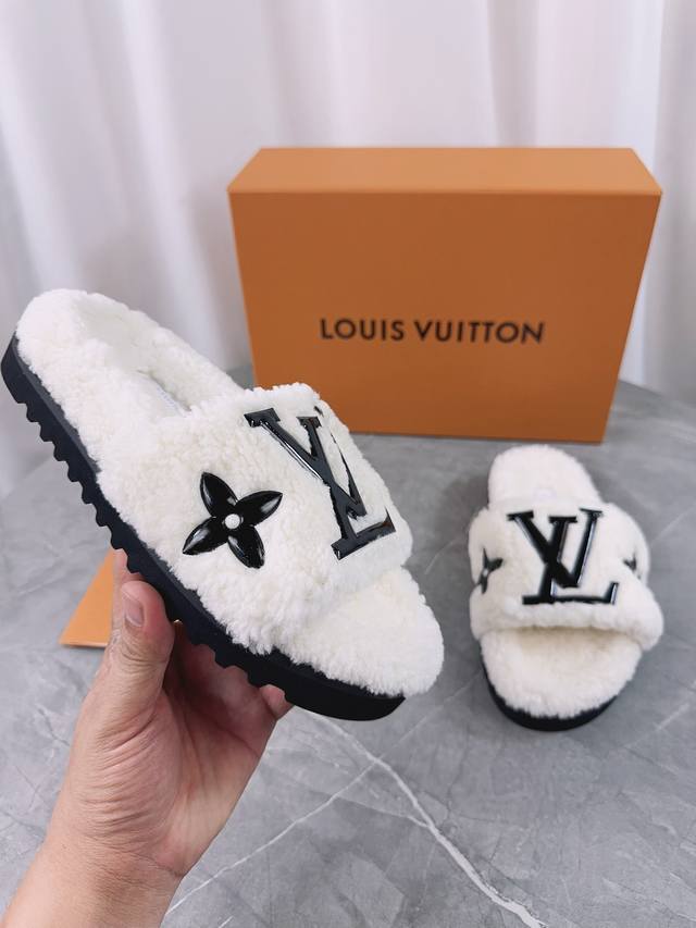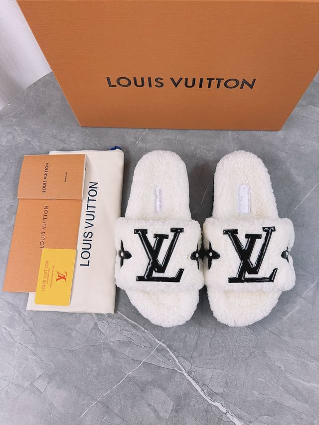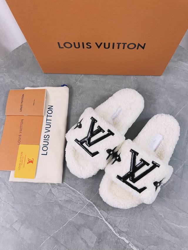 Louis Vuitton (LV) New Wool Slippers - Soft and Fine Wool, Top Quality Pure Wool Straight Hair! Super warm, wearing them feels like walking on clouds. The classic LV monogram embellishments are exquisite and sophisticated, instantly elevating the value of these slippers! The sole is an original molded EVA foam non-slip outsole, very comfortable and non-slip, and the sole has a certain thickness for excellent comfort! Upper: Original Australian Wool Lining: Australian Wool Insole: Australian Wool Outsole: Original Foam Sole Height: 3.5cm Packaging: Original Drawer Box Sizes: 35-40, 34, 40, 41 (Custom orders are non-refundable) Color: Official website synchronized color batch: