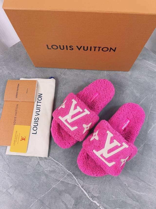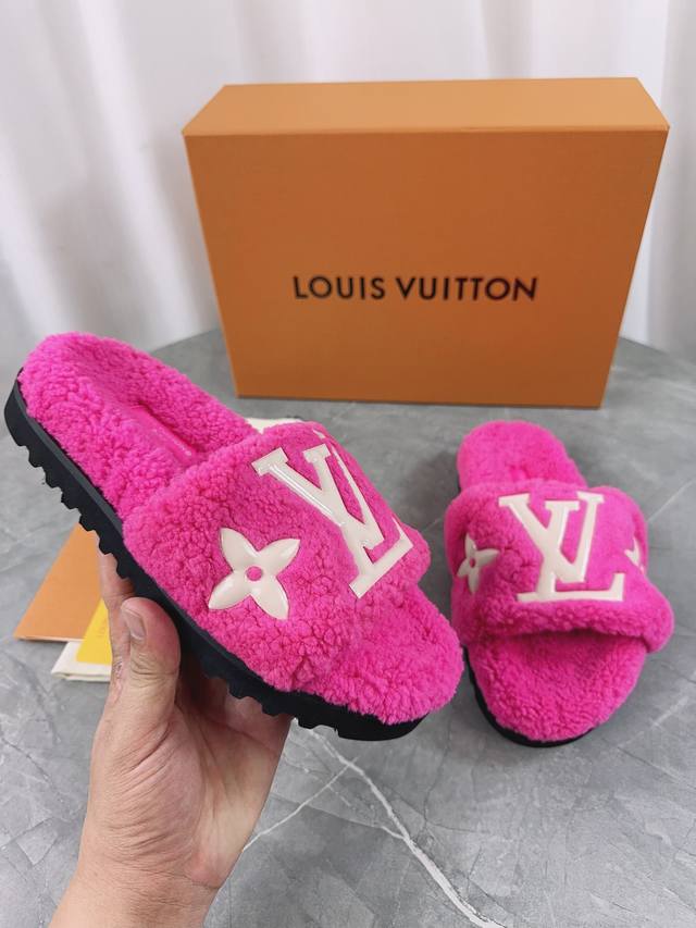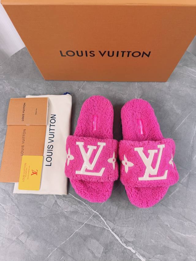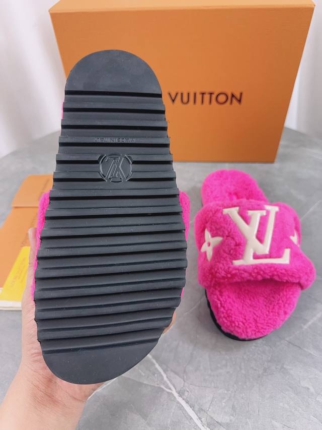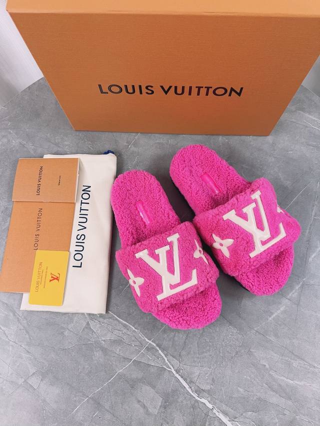 Louis Vuitton (LV) New Wool Slippers - Soft and Fine Wool, Top Quality Pure Wool Straight Fur! Super warm, wearing them feels like walking on clouds. The classic LV monogram embellishments are exquisite and sophisticated, instantly elevating the value of these slippers! The sole is an original molded EVA foam non-slip outsole, very comfortable and non-slip, and the sole has a certain thickness for excellent comfort! Upper: Original Australian Wool Lining: Australian Wool Insole: Australian Wool Outsole: Original Foam Sole Height: 3.5cm Packaging: Original Drawer Box Sizes: 35-40, 34, 40, 41 (Custom orders are non-refundable) Color: Official website synchronized color batch: